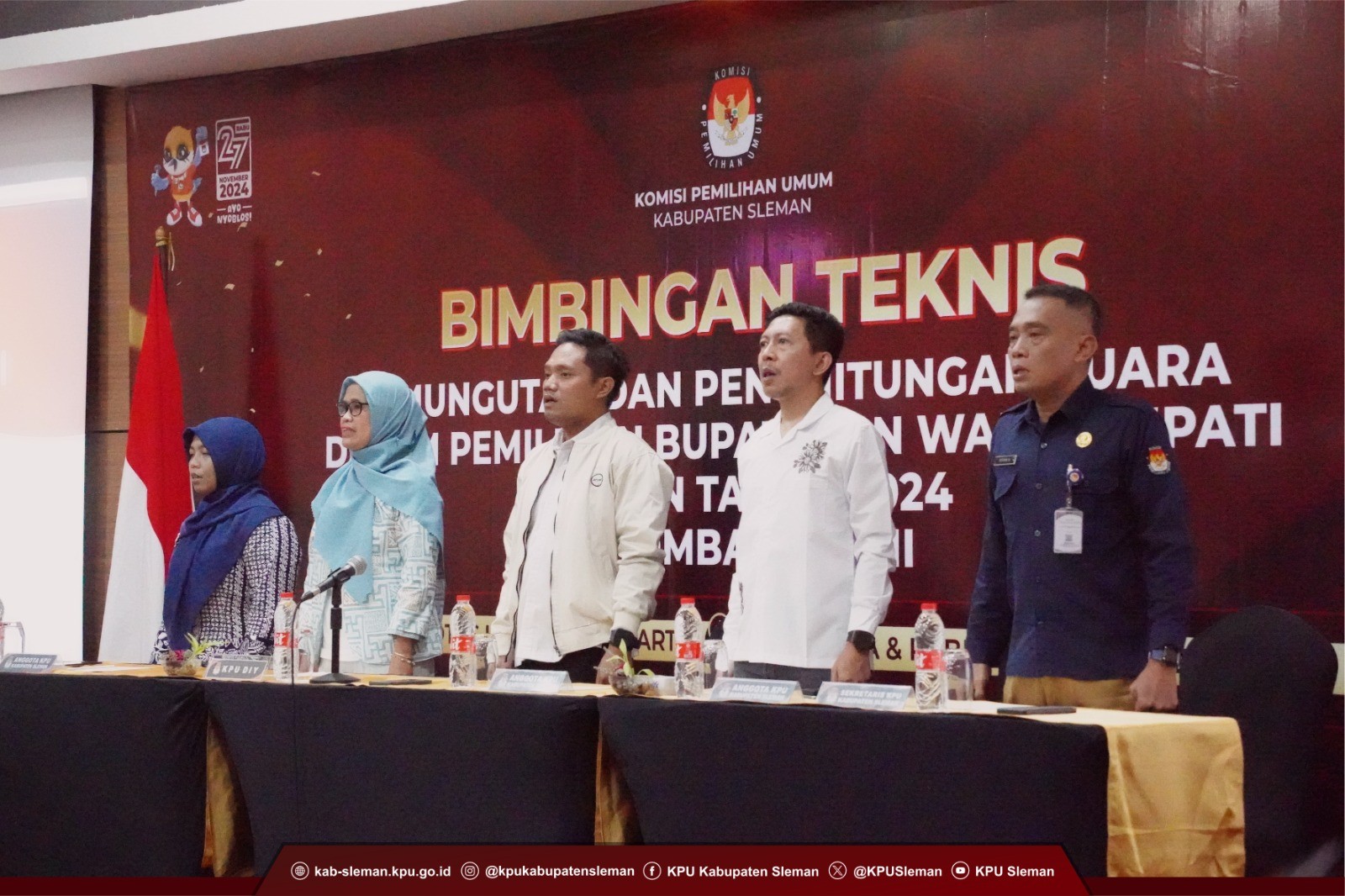 Sleman (12/11) – KPU Kabupaten Sleman menyelenggarakan Bimbingan Teknis Pemungutan dan Penghitungan Suara di TPS pada Pemilihan Bupati dan Wakil Bupati Sleman Tahun 2024 Gelombang I. Kegiatan yang dilaksanakan di Crystal Lotus Hotel pada Selasa (05/11) diikuti oleh PPK dan PPS dari sembilan kapanewon di Kabupaten Sleman, yakni Kapanewon Berbah, Cangkringan, Depok, Gamping, Godean, Kalasan, Minggir, Mlati, dan, Moyudan.