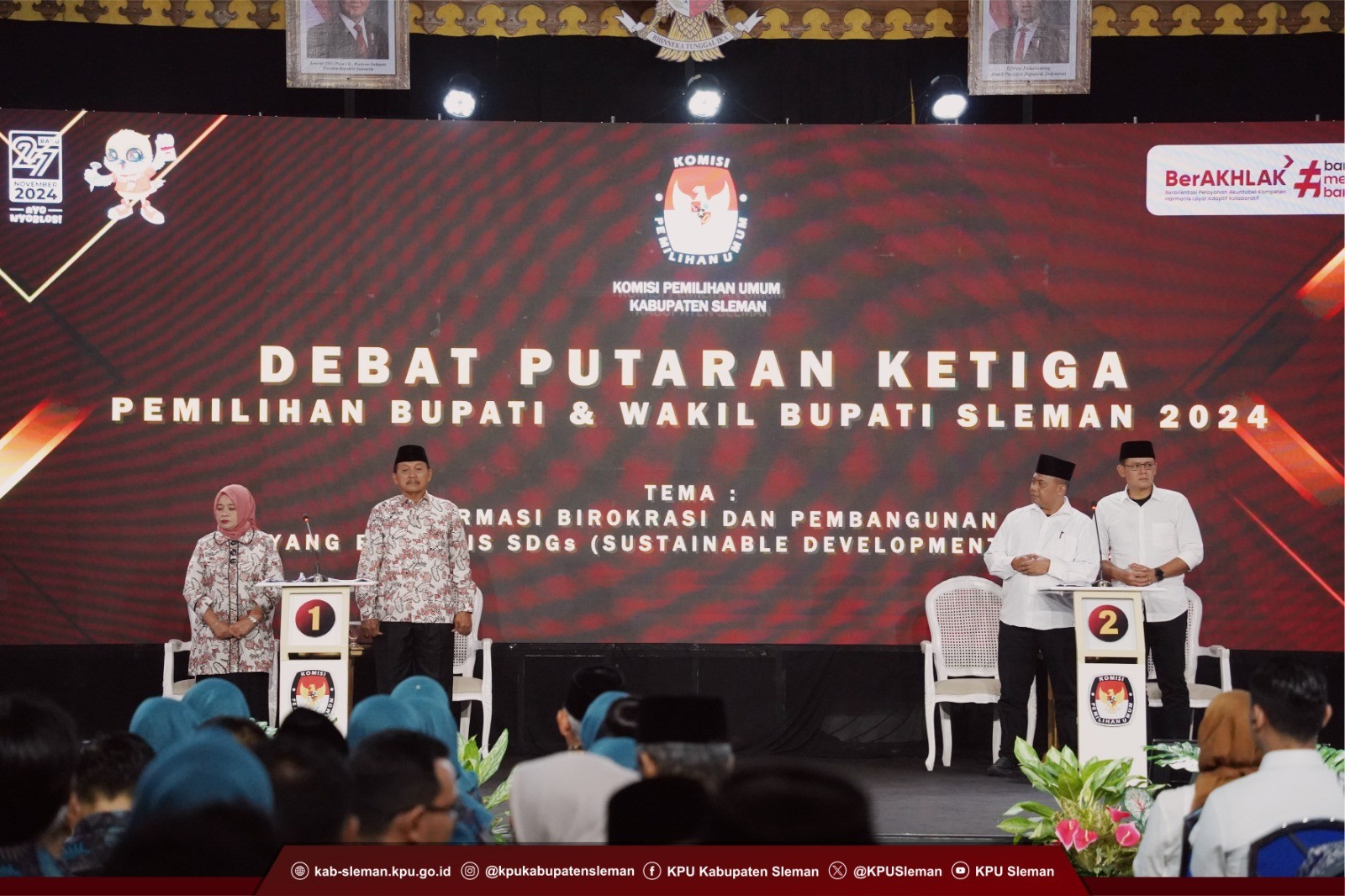 DEBAT PUBLIK KETIGA PASANGAN CALON BUPATI DAN WAKIL BUPATI SLEMAN PADA PEMILIHAN BUPATI DAN WAKIL BUPATI SLEMAN TAHUN 2024.