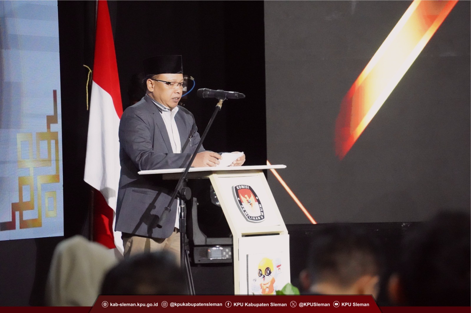 dok. foto Ketua KPU Sleman saat berikans ambutan di Acara Debat Publik