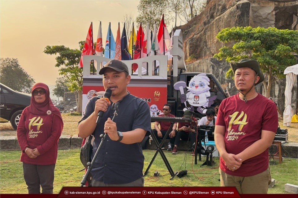 Sleman (15/10) - KPU Kabupaten Sleman melaksanakan rangkaian acara Roadshow Kirab Pemilu 2024 di Tebing Breksi Prambanan pada Minggu (15/10). Mobil bendera Partai Politik Peserta Pemilu 2024 melaju beriringan disertai lagu Jingle Pemilu 2024 dari Kantor KPU Kabupaten Sleman menuju Tebing Breksi Prambanan. Rute perjalanan dalam iring-iringan tersebut yakni melewati Kapanewon Sleman-Ngaglik-Ngemplak-Depok-Berbah-Kalasan-Prambanan sembari melakukan sosialisasi dan pendidikan pemilih melalui pengeras suara.