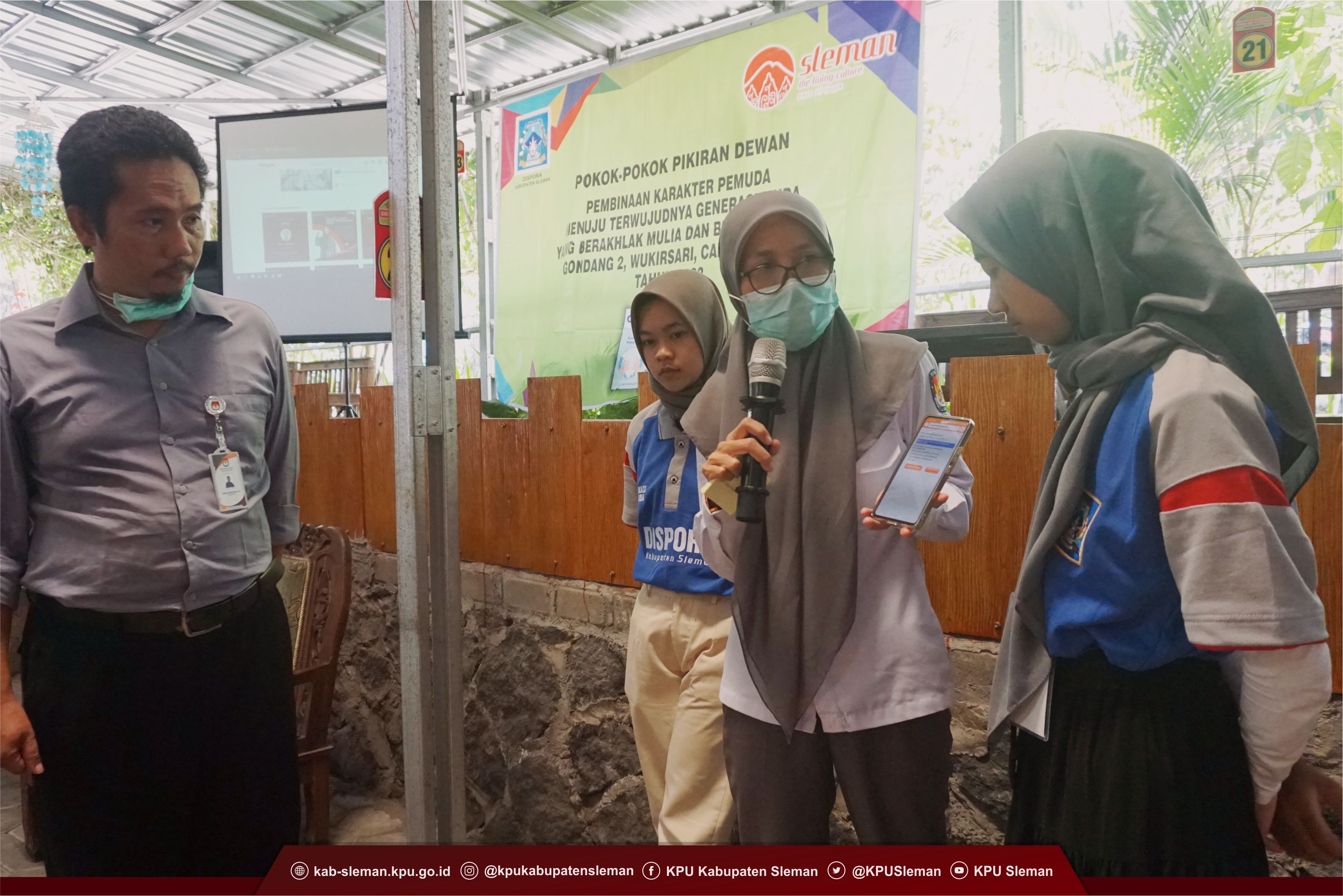 Aswino menyampaikan terkait tahapan pemilu di Indonesia, khususnya tahapan dan jadwal pelaksanaan Pemilu Tahun 2024. Aswino menjelaskan dengan penyampaian alur tahapan dan jadwal ini diharapkan para pemuda ikut berpartisipasi dalam penyelenggaraan Pemilu 2024 baik sebagai pemilih maupun terlibat sebagai badan penyelenggara ad hoc. Aswino juga menghimbau para pemuda untuk dapat turut aktif mengikuti perkembangan kepemiluan melalui media sosial resmi KPU Kabupaten Sleman.