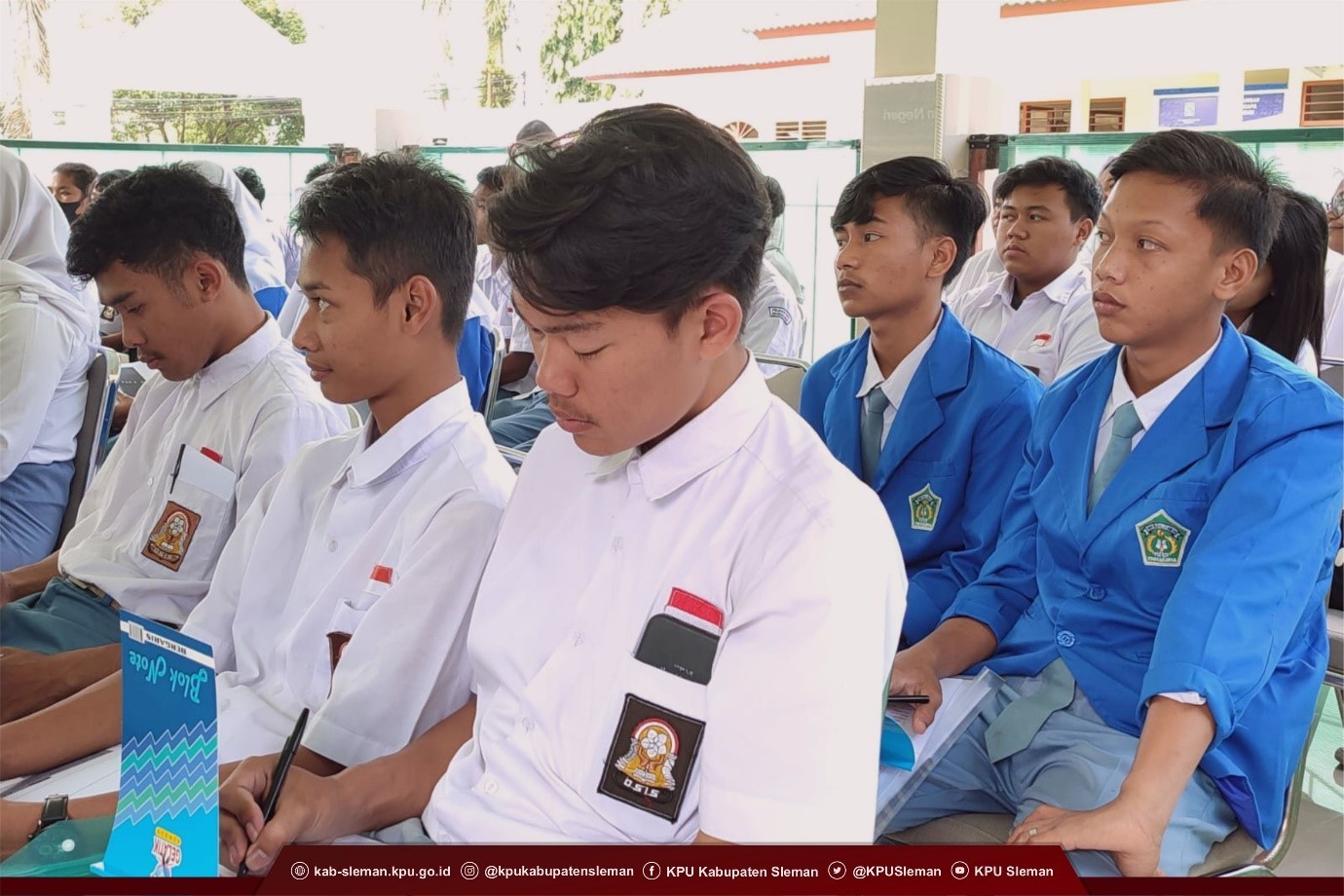 Ketua Bawaslu Kabupaten Sleman, Abdul Kharim Mustofa memberikan materi terkait pemilu di kalangan pemilih pemula. Disebutkan dalam Undang Undang Pemilu Pasal 1 Ayat 2 menyebutkan bahwa kedaulatan berada di tangan rakyat dan dilaksanakan menurut UUD sedangkan dalam Pasal 22 E menyebutkan Pemilu dilaksanakan secara luber jurdil setiap lima tahun sekali dan Pemilu diselenggarakan untuk memilih anggota DPR, DPD, Presiden dan Wakil Presiden dan DPRD. Semua tertuang jelas di aturan dalam tata cara dan pelaksanaannya. Sehingga tugas dari para pemilih pemula saat ini yaitu menggunakan hak pilih secara cerdas dan dapat menolak informasi yang tidak dapat diketahui kebenarannya (hoaks), isu-isu sara dan tolak politik uang.