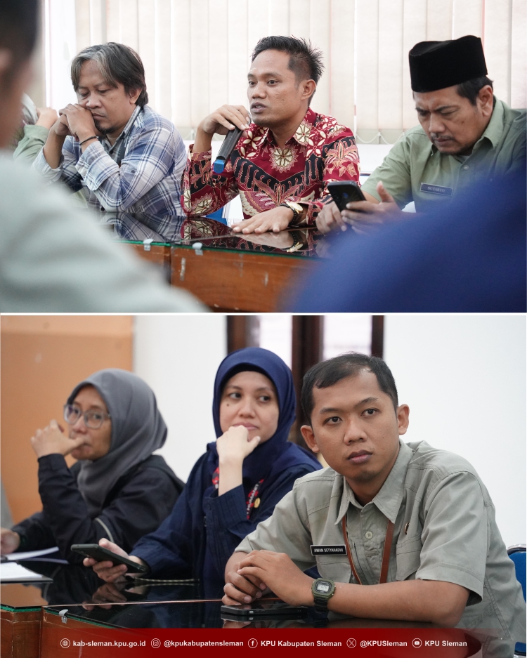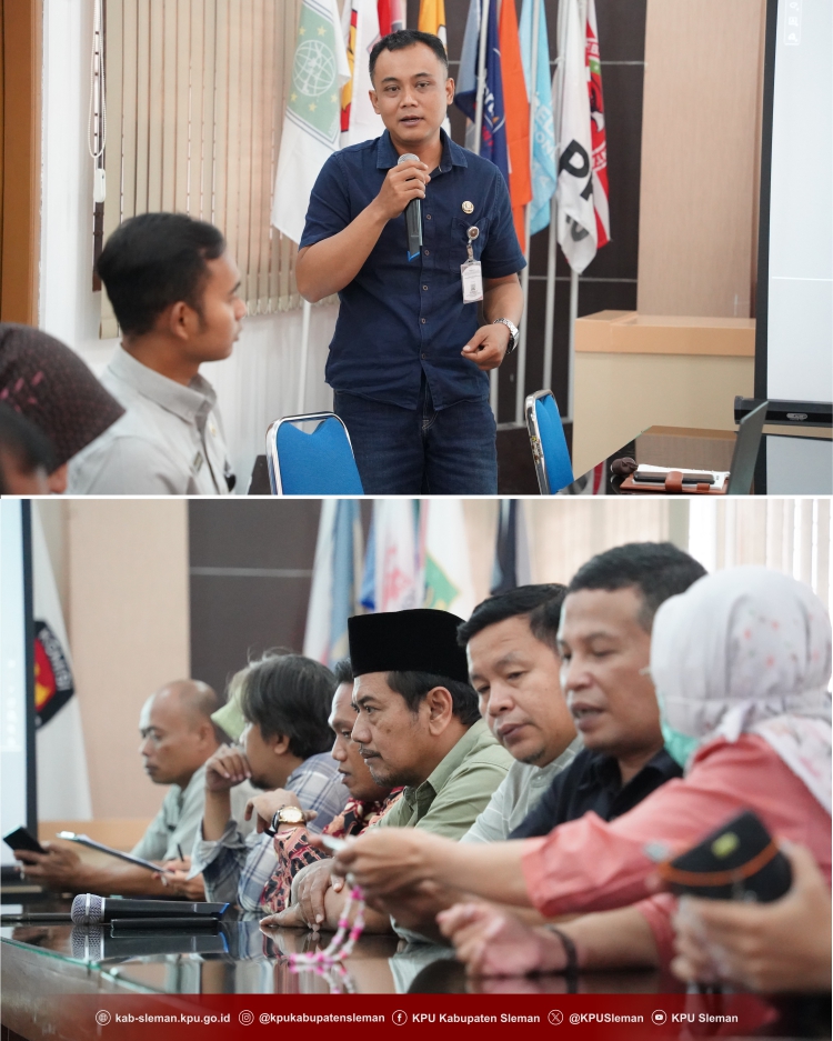 Sleman - KPU Kabupaten Sleman melaksanakan Knowledge Sharing Penanganan Benturan Kepentingan di Lingkungan KPU Kabupaten Sleman pada Kamis (22/05). Sura’ie selaku Ketua Divisi Hukum dan Pengawasan KPU Kabupaten Sleman menjadi narasumber Knowledge Sharing yang diadakan di Ruang Rapat Kantor KPU Kabupaten Sleman.