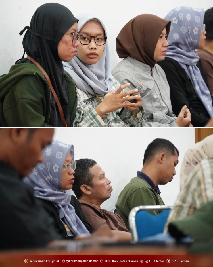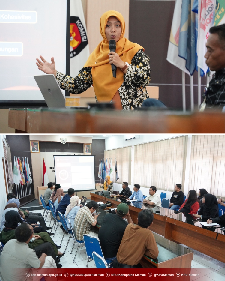 Sleman - KPU Kabupaten Sleman melaksanakan Knowledge Sharing Penataan Daerah Pemilihan (Dapil) dan Alokasi Kursi Anggota DPRD Kabupaten Sleman pada Kamis (15/05). Noor Aan Muhlishoh selaku Ketua Divisi Teknis Penyelenggaraan Pemilu KPU Kabupaten Sleman menjadi narasumber Knowledge Sharing yang diadakan di Ruang Rapat Kantor KPU Kabupaten Sleman.