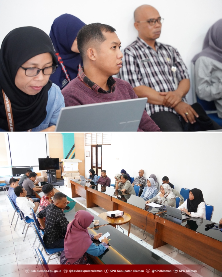Sleman - KPU Kabupaten Sleman melaksanakan Knowledge Sharing Kearsipan pada Kamis (08/05). Rapat yang diadakan di Ruang Rapat Kantor KPU Kabupaten Sleman dipimpin oleh Ketua Divisi Sosdiklih, Parmas, dan SDM KPU Kabupaten Sleman, Huda Al Amna dan Sekretaris KPU Kabupaten Sleman, Yuyud Futrama.