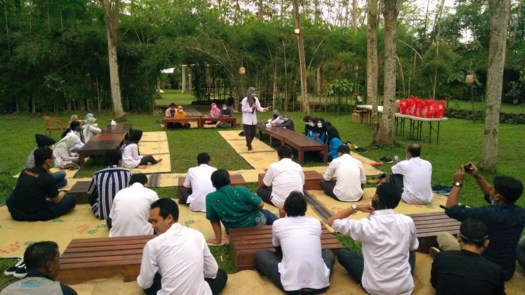 Kegiatan dikemas lebih informal dan tetap memperhatikan protokol kesehatan pencegahan virus Covid 19 sehingga kegiatan dilaksanakan di luar ruang (outdoor). (Nars)