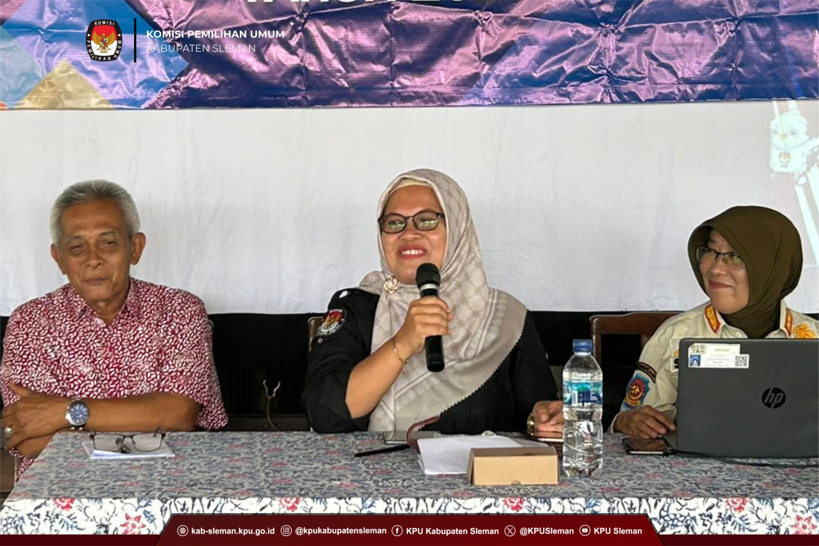 Sleman (25/10) - Ketua Divisi Teknis Penyelenggaraan KPU DIY Tri Mulatsih, S.Pd, MA, hadir sebagai narasumber "Bimbingan Teknis Forum Kewaspadaan Dini Masyarakat" pada (25/10) yang diselenggarakan oleh Pemerintah Kapanewon Depok. Acara yang merupakan kerjasama antara FKDM dan Kesbangpol serta Satpol PP Kabupaten Sleman dihadiri oleh Pemerintah Kapanewon Depok, Satpol PP Kabupaten Sleman, Partai Politik dan PPS tingkat Kapanewon Depok.