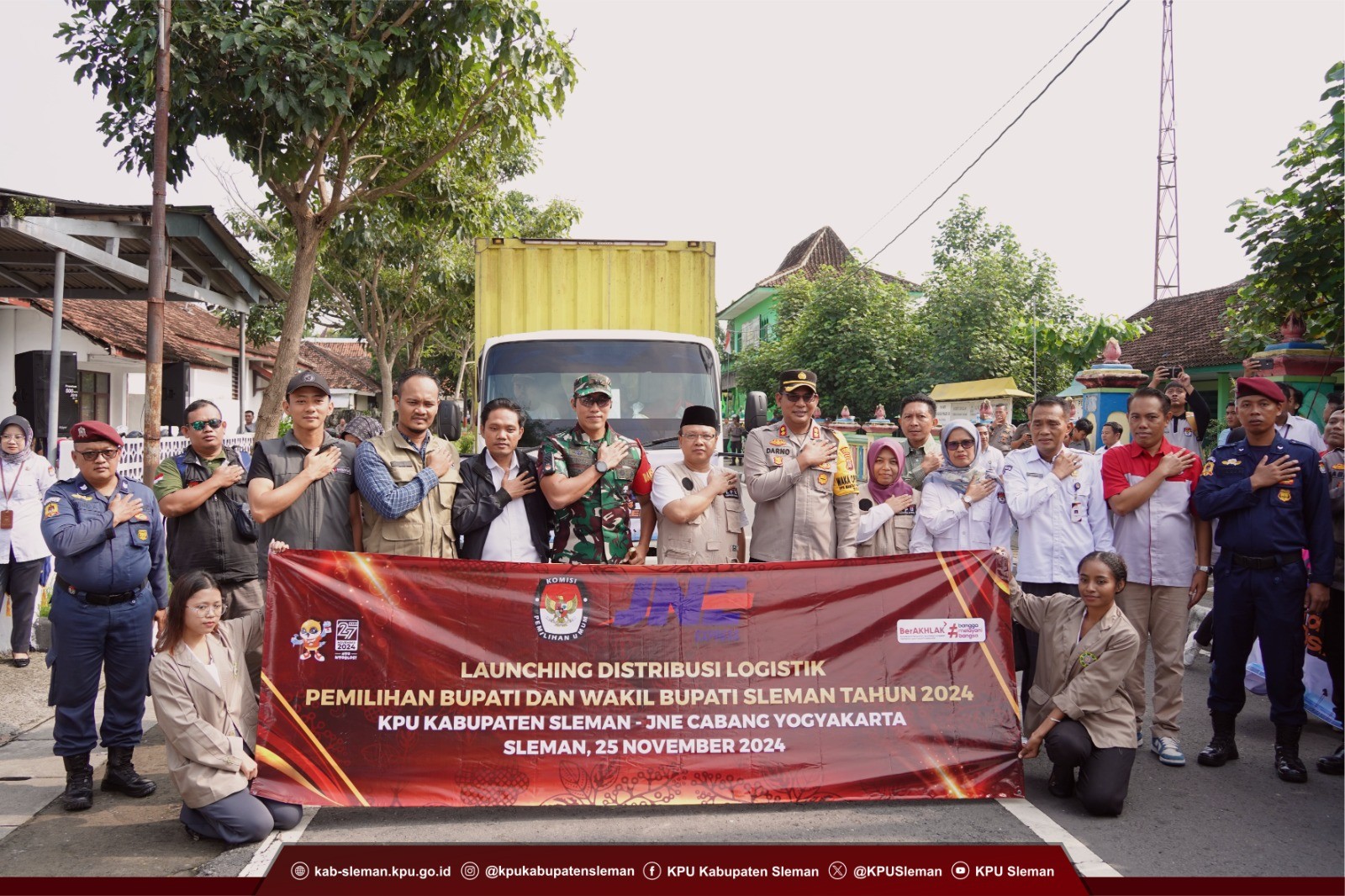 Pendistribusian logistik yang bekerjasama dengan PT. Tiki Jalur Nugraha Ekakurir (JNE) dilaksanakan ke 17 kapanewon dan 86 kalurahan se-Kabupaten Sleman. Logistik yang didistribusikan sebanyak 1.731 kotak suara, 6.924 bilik suara beserta alat kelengkapan TPS lainnya ditargetkan selesai dalam waktu 2 (dua) hari yang dimulai pada Senin, 25 November 2024 dan ditargetkan terselesaikan seluruhnya di hari berikutnya pada Selasa, 26 November 2024.