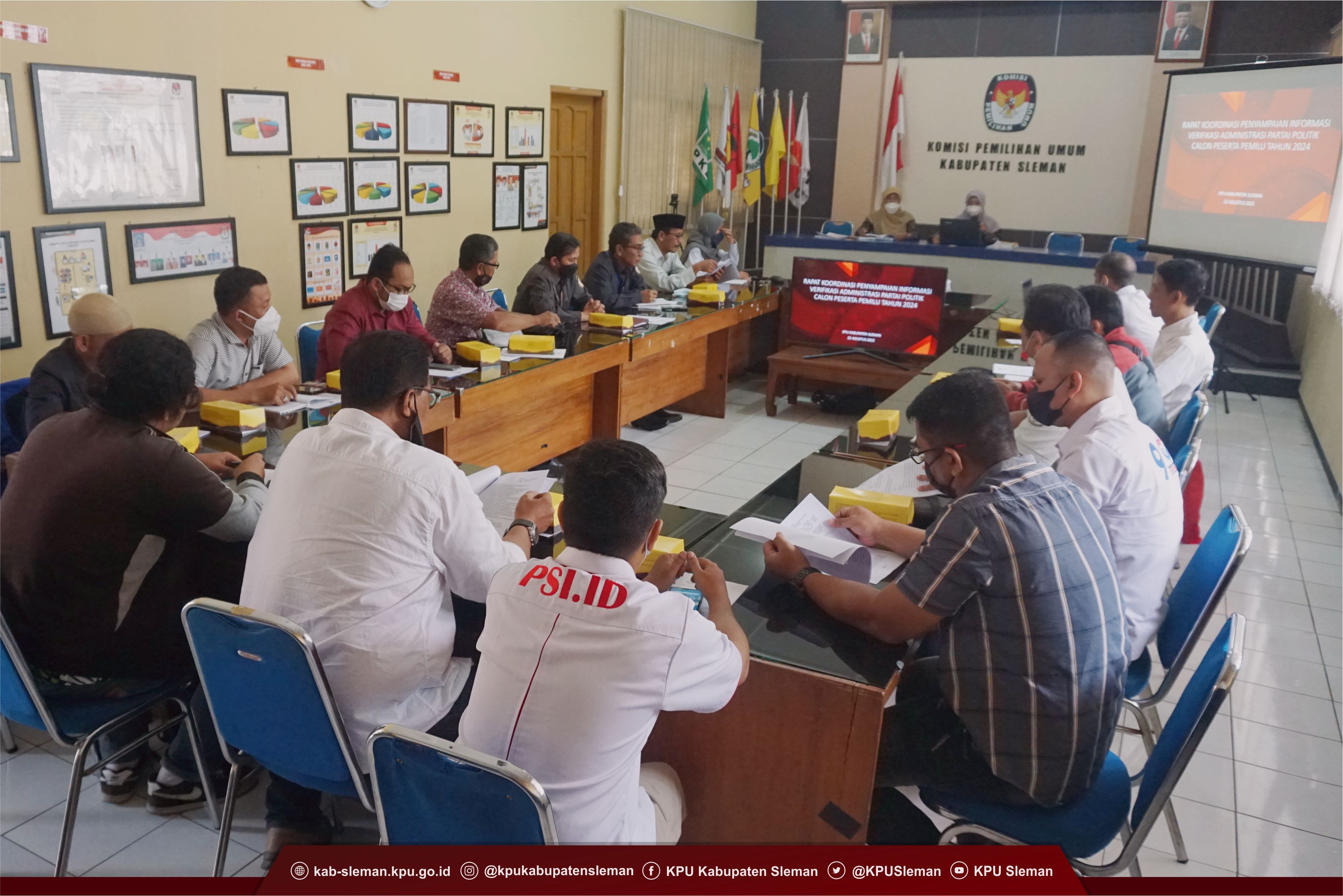 KPU Kabupaten Sleman Gelar Rapat Koordinasi Penyampaian Informasi Tahapan Verifikasi Administrasi Partai Politik Calon Peserta Pemilu 2024