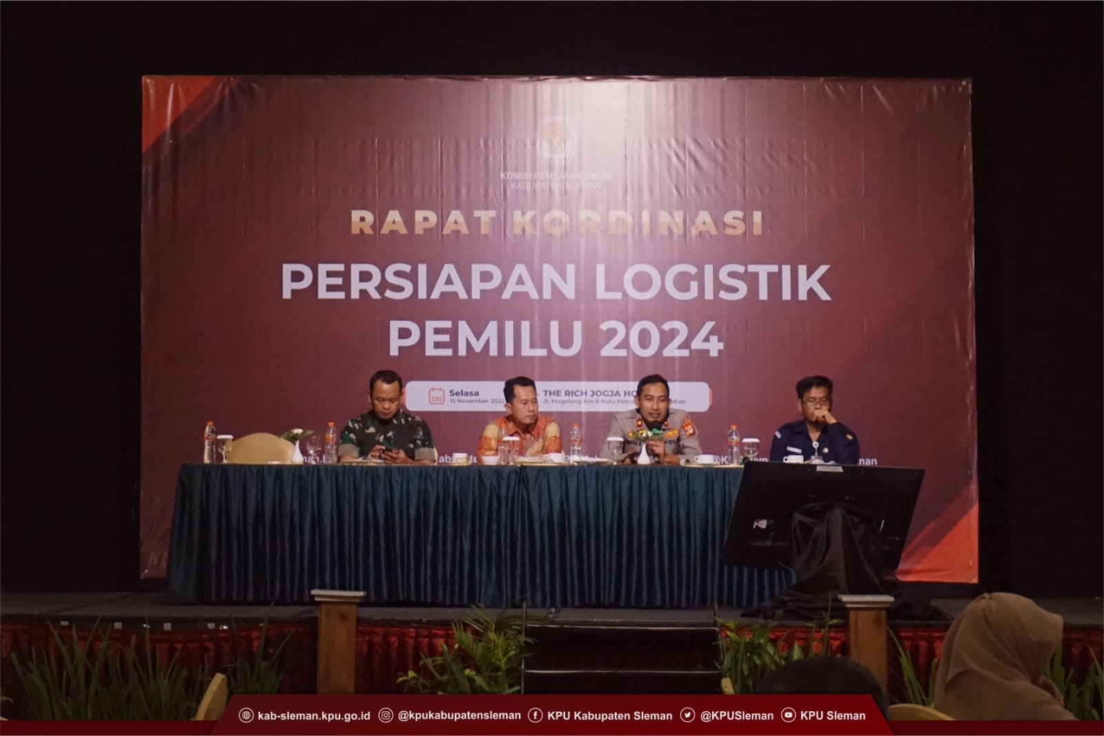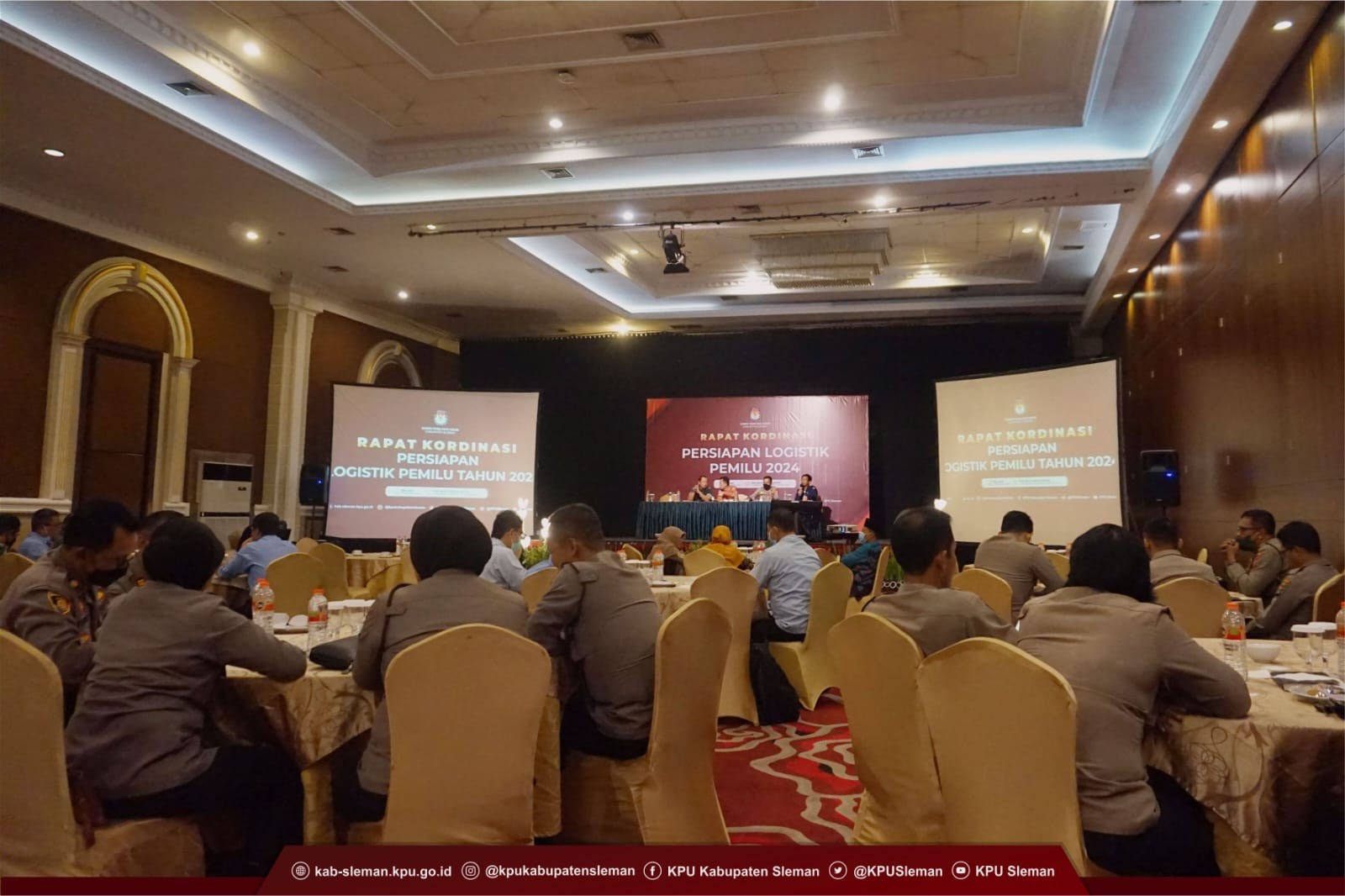 Keberhasilan Pemilu 2024 mendatang bisa berjalan ketika ditunjang dengan logistik yang baik. Oleh karena itu, penting bagi KPU Kabupaten Sleman untuk dapat mengelola logistik dengan tepat kualitas, tepat jenis, tepat sasaran, tepat waktu, tepat jumlah, dan efektif, serta efisien. Dalam mewujudkan logistik tersebut perlu adanya perencanaan dan pengelolaan logistik untuk mempersiapkan beberapa aspek kebutuhan logistik. Salah satunya dengan melakukan rapat koordinasi dengan TNI dan Polri yang nantinya dapat berkolaborasi dengan baik untuk untuk menyongsong Pemilu 2024 .
