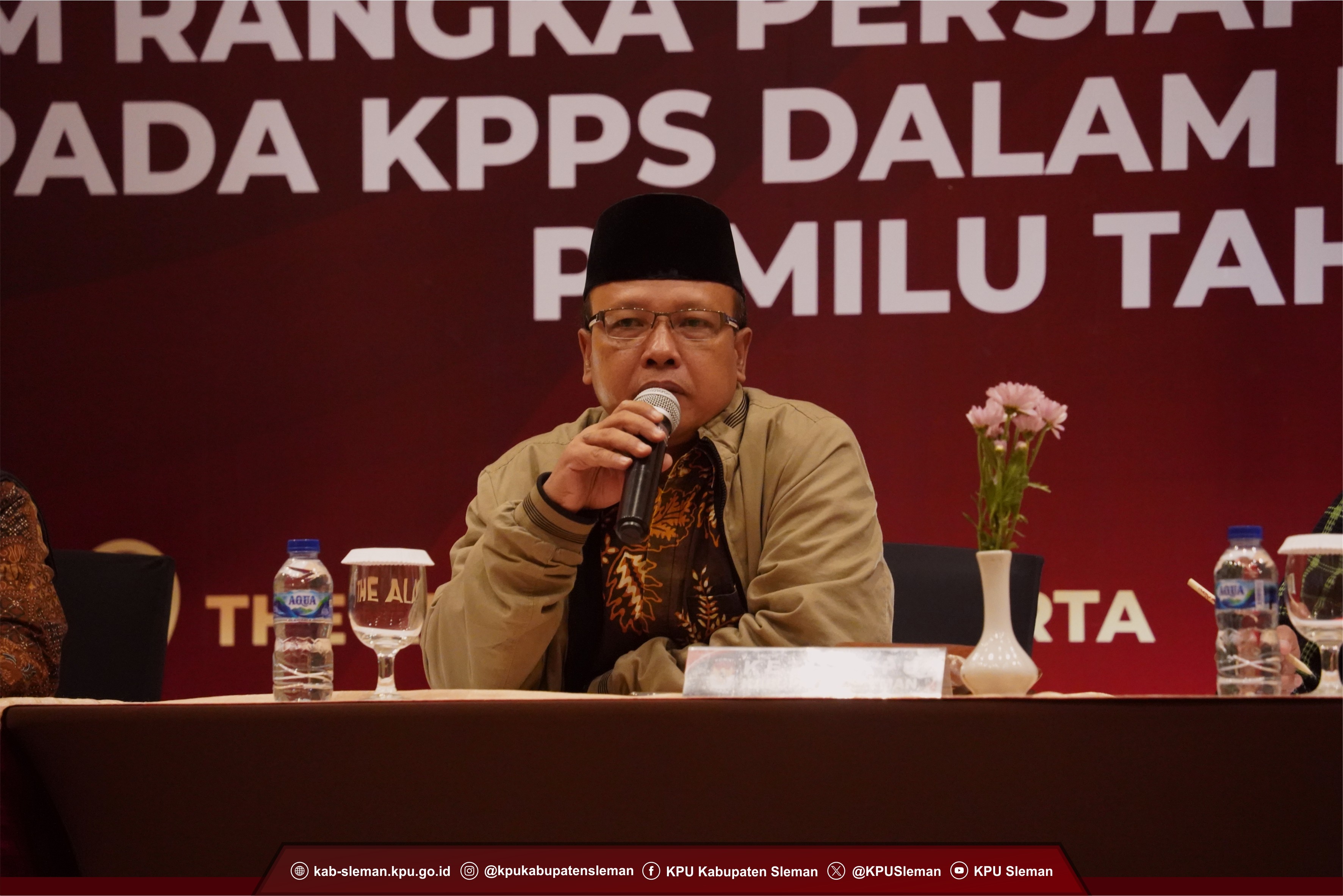 Sleman (26/01) - Menjelang dilantiknya Kelompok Penyelenggara Pemungutan Suara (KPPS), KPU Kabupaten Sleman mengundang Ketua dan Anggota PPK dan PPS se-Kabupaten Sleman untuk mempersiapkan bimbingan teknis bagi KPPS sebagai bentuk persiapan dalam menghadapi Tahapan Pemungutan dan Penghitungan Suara Pemilu Tahun 2024. Kegiatan tersebut digelar di The Alana Yogyakarta Hotel pada Selasa (23/01) pukul 09.00 WIB. Turut hadir dalam giat tersebut yakni Ahmad Shidqi selaku Ketua KPU Daerah Istimewa Yogyakarta (DIY).