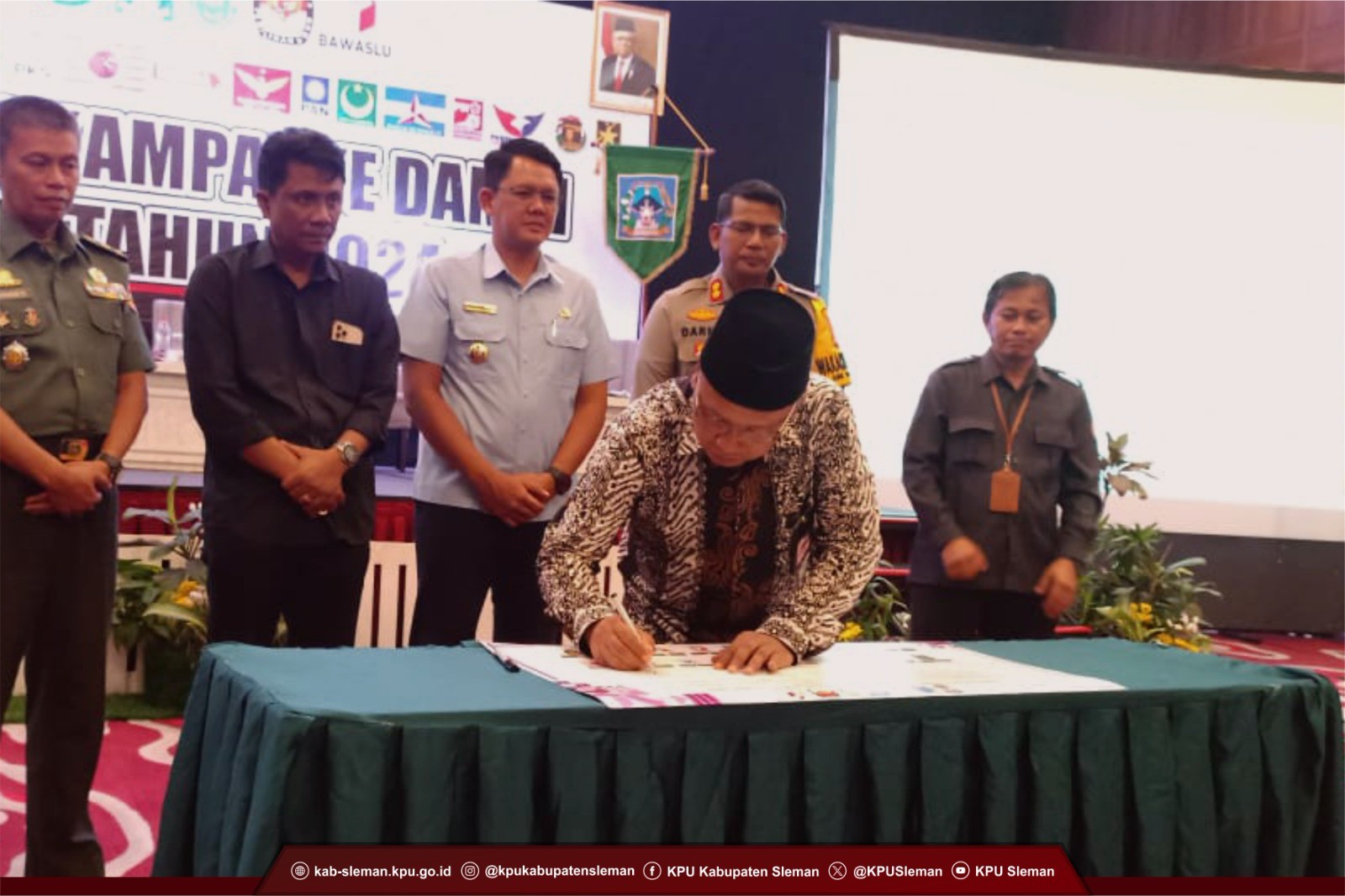 dok. foto Ketua KPU kabupaten Sleman Ahmad Baehaqi saat penandatanganan Deklrasi Kampanye Damai