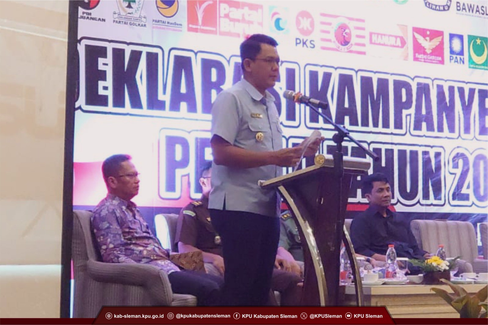 Giat tersebut diawali oleh hiburan dari Sanggar Sakura dengan menampilkan tarian daerah Parijoto dan dilanjutkan dengan doa bersama untuk memohon kelancaran dan kesuksesan Pemilu Tahun 2024. Kemudian, Sekretaris Badan Kesatuan Bangsa dan Politik Kabupaten Sleman yakni Indra Darmawan memaparkan Laporan Penyelenggara dan setelahnya kegiatan dibuka oleh Danang Maharsa sekaligus memberikan sambutannya. “Kampanye sebagai sarana pendidikan politik dan peraih dukungan massa. Maka harus dilaksanakan sesuai dengan tujuannya,” tegas Danang .