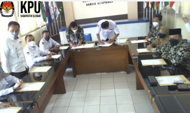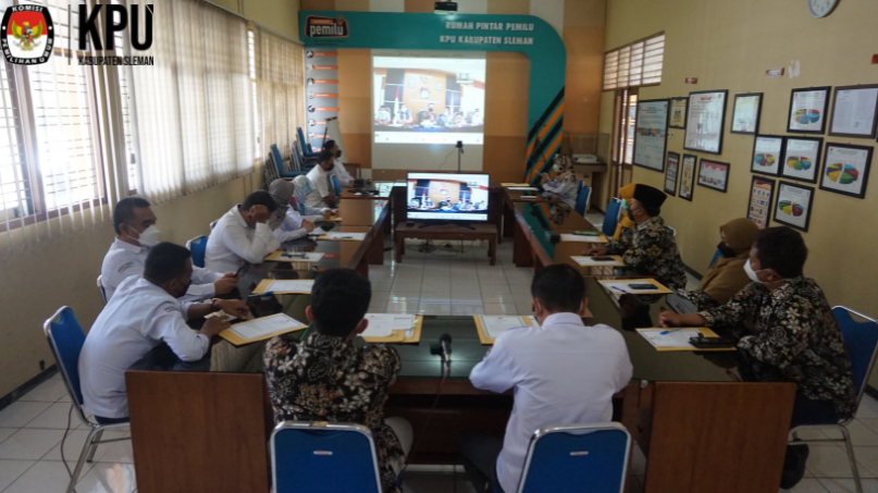 KPU Kabupaten Sleman Ikuti Penandatanganan Perjanjian Kinerja dan Pakta Integritas Tahun 2022 Secara Virtual