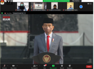 Sebagai tindak lanjut Surat Edaran KPU RI Nomor 16 Tahun 2021 tentang Penyelenggaraan Upacara Peringatan Hari Kesaktian Pancasila, maka Ketua dan seluruh SDM dilingkungan KPU Kabupaten Sleman mengikuti upacara secara virtual. Seluruh pegawai mengikuti secara langsung melalui kanal Youtube Kementerian Pendidikan Kebudayaan Riset dan Teknologi (Kemenristek) RI hingga berakhirnya upacara pada pukul 08.30 WIB.