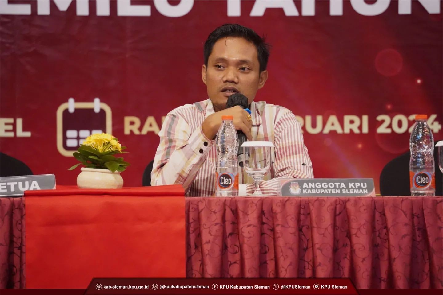 Sleman (09/02) - KPU Kabupaten Sleman melaksanakan Bimbingan Teknis Rekapitulasi Hasil Pemungutan Suara dan SIREKAP pada Pemilu Tahun 2024 pada Jumat (09/02) pukul 09.00 WIB. Kegiatan yang dilaksanakan pada The Rich Jogja Hotel tersebut mengundang stakeholder terkait, Ketua dan Anggota PPK se-Kabupaten Sleman, PPS Divisi Teknis dan Data Informasi se-Kabupaten Sleman, Sekretaris PPS se-Kabupaten Sleman, dan Tenaga Pendukung PPK se-Kabupaten Sleman.