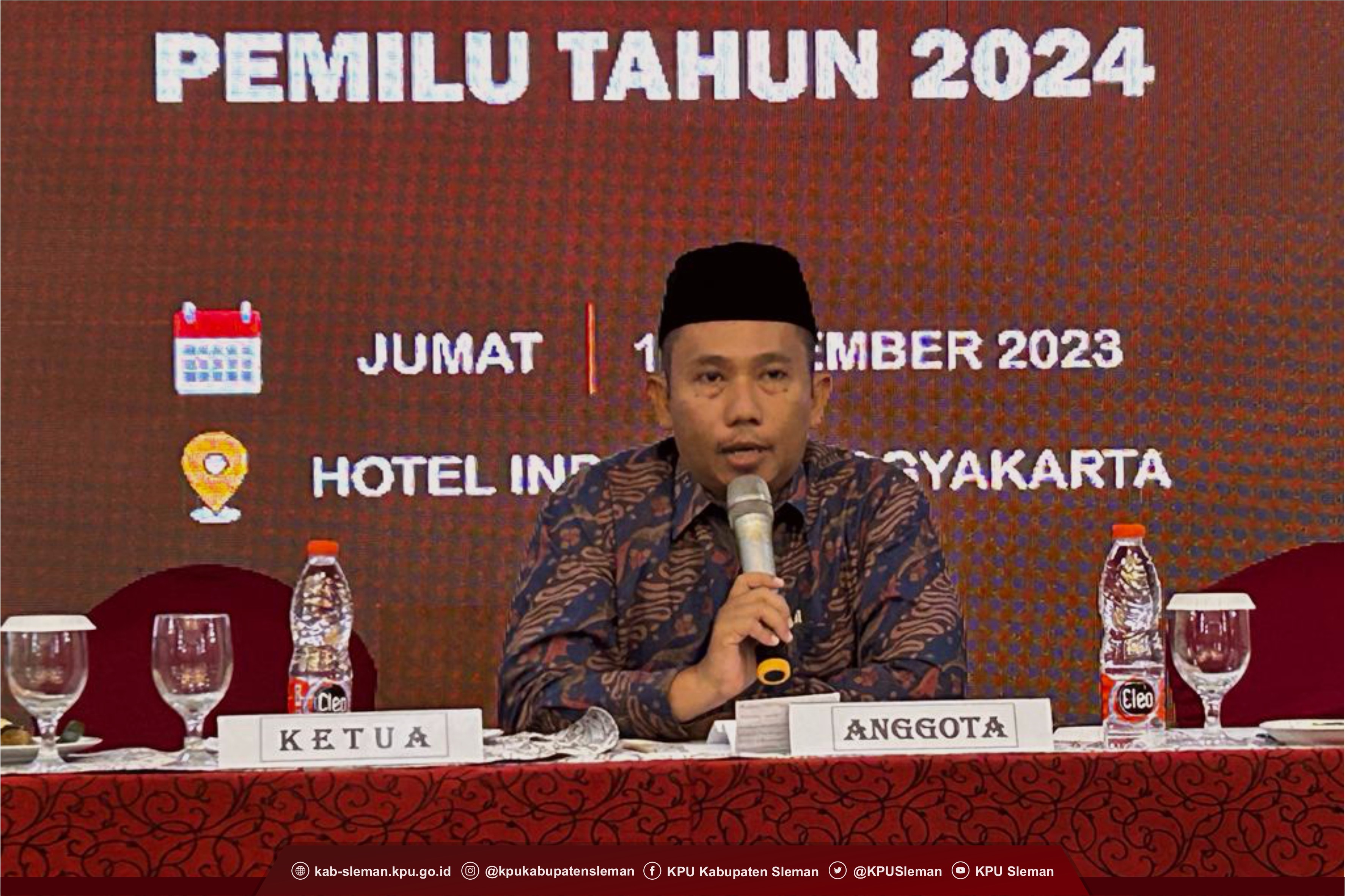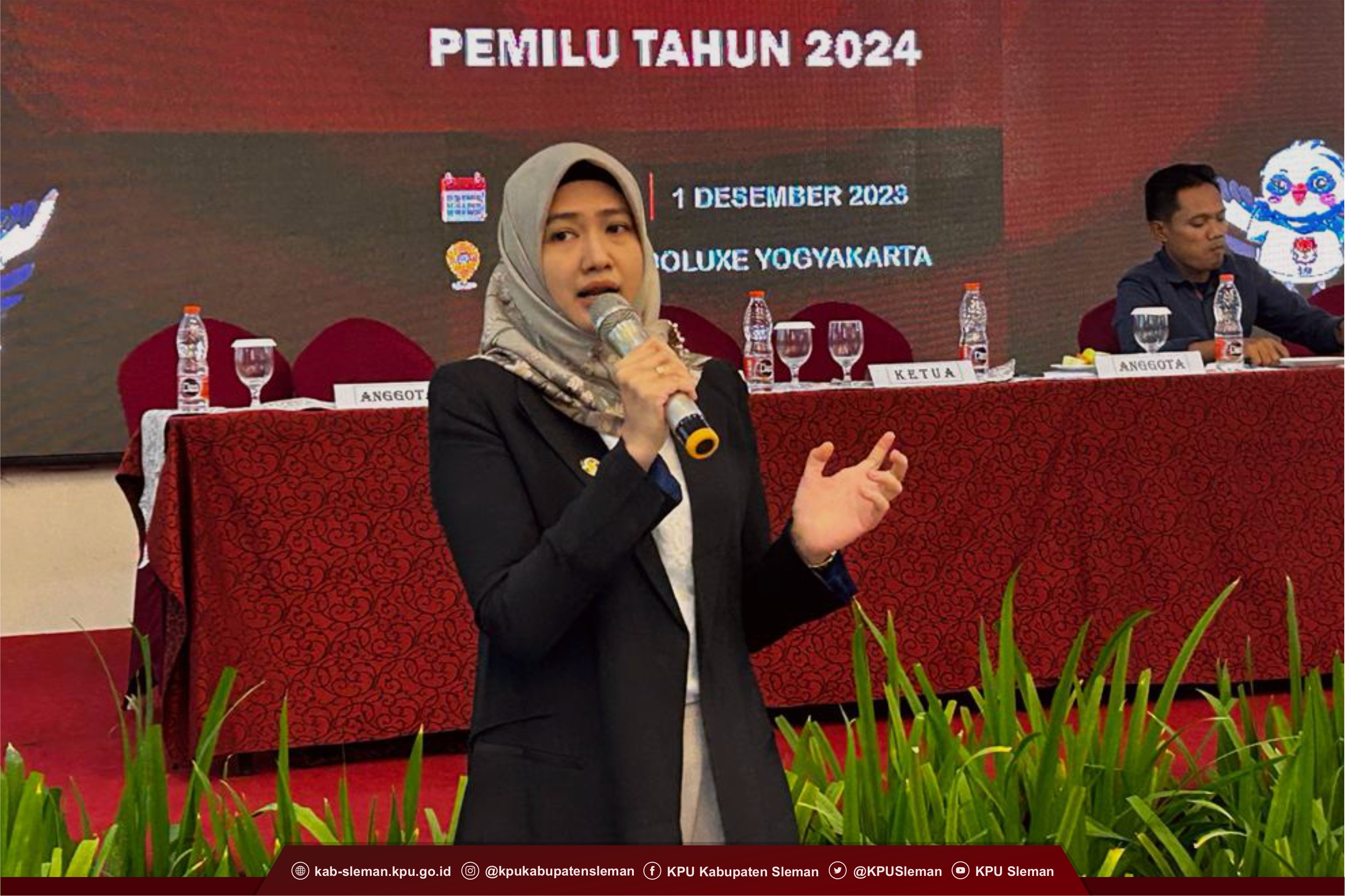 Sleman (07/12) - KPU Kabupaten Sleman melaksanakan Bimbingan Teknis Pencegahan Pelanggaran Kode Etik Badan Ad Hoc Pemilu Tahun 2024 bagi PPK dan PPS se-Kabupaten Sleman pada Jumat (01/12) yang bertempat di Hotel Indoluxe Ngaglik Sleman. Kegiatan tersebut diselenggarakan agar PPK dan PPS dapat menjaga integritas, netralitas, dan profesionalitas sehingga tidak sampai terjadi pelanggaran kode etik dalam penyelenggaraan pemilu.