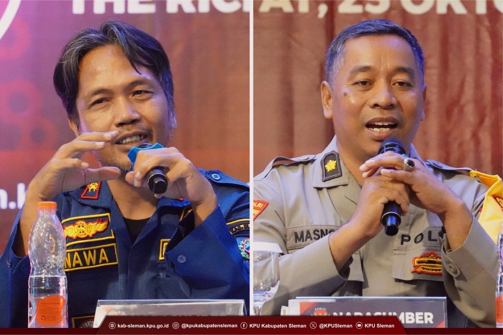 Materi pertama disampaikan oleh Kompol Masnoto, S.Pd selaku Kabag Ops Polresta Sleman terkait Pengamanan Logistik Pilkada Tahun 2024. Masnoto menekankan bahwa hal penting dalam pengamanan bertujuan untuk memastikan penyelenggaraan Pemilihan Bupati dan Wakil Bupati Sleman Tahun 2024 berjalan baik dan lancar tanpa halangan suatu apapun. Personil-personil yang diturunkan akan menyesuaikan kebutuhan pada tiap kegiatan.
