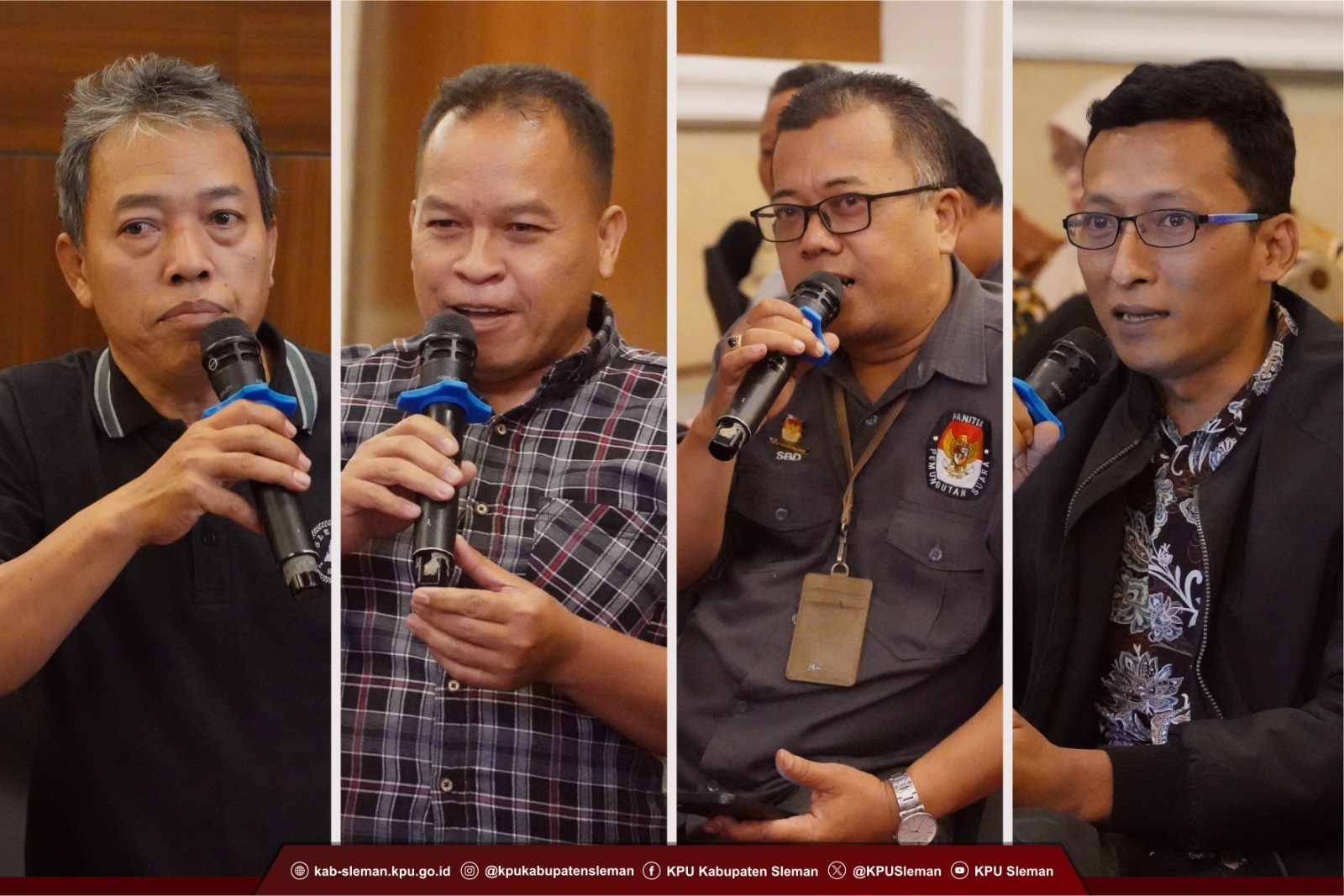 Usai pemaparan materi, pihak PPK dan PPS melakukan tanya jawab dengan narasumber terkait pengamanan logistik. Kemudian, stakeholder yang hadir berkesempatan menyampaikan saran kepada KPU Kabupaten Sleman. (win)