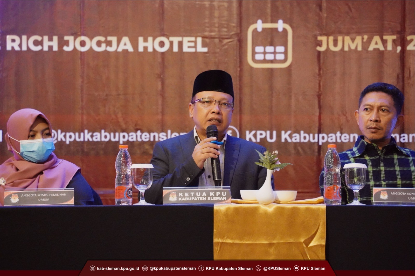 Sleman (26/10) - Sebagai persiapan menuju Tahapan Pemungutan dan Penghitungan Suara dalam Pemilihan Bupati dan Wakil Bupati Sleman Tahun 2024, KPU Kabupaten Sleman selenggarakan Rapat Koordinasi Pengamanan Logistik Pemilihan Bupati dan Wakil Bupati Sleman 2024 pada Jumat (25/10) bertempat di The Rich Jogja Hotel. Stakeholder terkait beserta Ketua PPK dan Ketua PPS se-Kabupaten Sleman terundang dalam kegiatan tersebut.