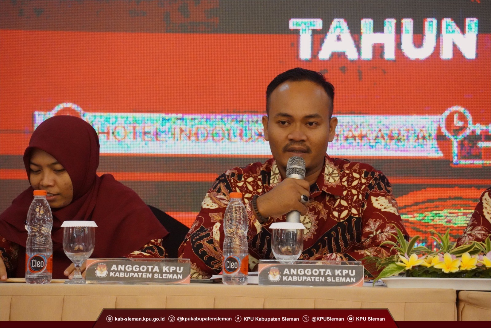 Sleman (11/08) - KPU Kabupaten Sleman melaksanakan Rapat Pleno Terbuka Rekapitulasi dan Penetapan Daftar Pemilih Sementara (DPS) pada Pemilihan Bupati dan Wakil Bupati Sleman Tahun 2024 pada Sabtu (10/08). Kegiatan yang diselenggarakan di Indolux Hotel Jogjakarta mengundang Forkompimda Kabupaten Sleman, Bawaslu Kabupaten Sleman, OPD terkait, PPDI, dan PPK se-Kabupaten Sleman, serta Pantarlih penerima penghargaan.
