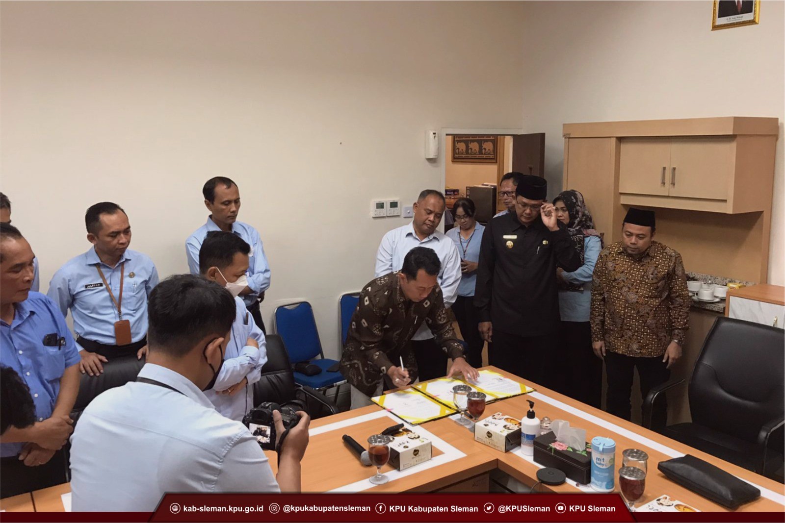 Sleman (23/08) - Menyongsong Pilkada yang akan dilaksanakan 2024 mendatang, KPU Kabupaten Sleman menandatangani kesepakatan dana hibah untuk Pilkada 2024. Penandatangan dalam kesepakatan ini adalah Tim Anggaran Pemerintah Daerah (TAPD) Sleman bersama KPU Kabupaten Sleman dan Bawaslu Kabupaten Sleman. Tanda tangan kesepakatan Pendanaan Kegiatan Pemilihan Bupati dan Wakil Bupati Sleman 2024 yang Bersumber dari APBD Sleman tersebut dilaksanakan pada Selasa (01/08) di Ruang Rapat Kantor Setda Sleman.