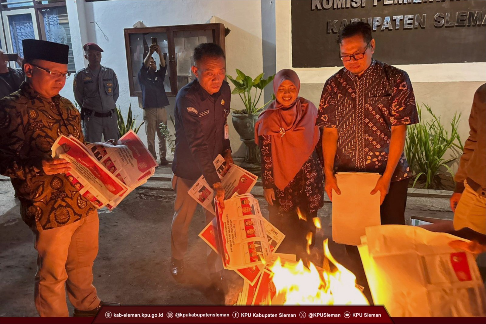 Dalam kegiatan tersebut, KPU Kabupaten Sleman memusnahkan surat suara PPWP sejumlah 382 lembar, surat suara DPR sejumlah 294 lembar, surat suara DPD sejumlah 146 lembar, surat suara DPRD Provinsi sejumlah 398 lembar, dan surat suara DPRD Kabupaten/Kota sejumlah 118 lembar.