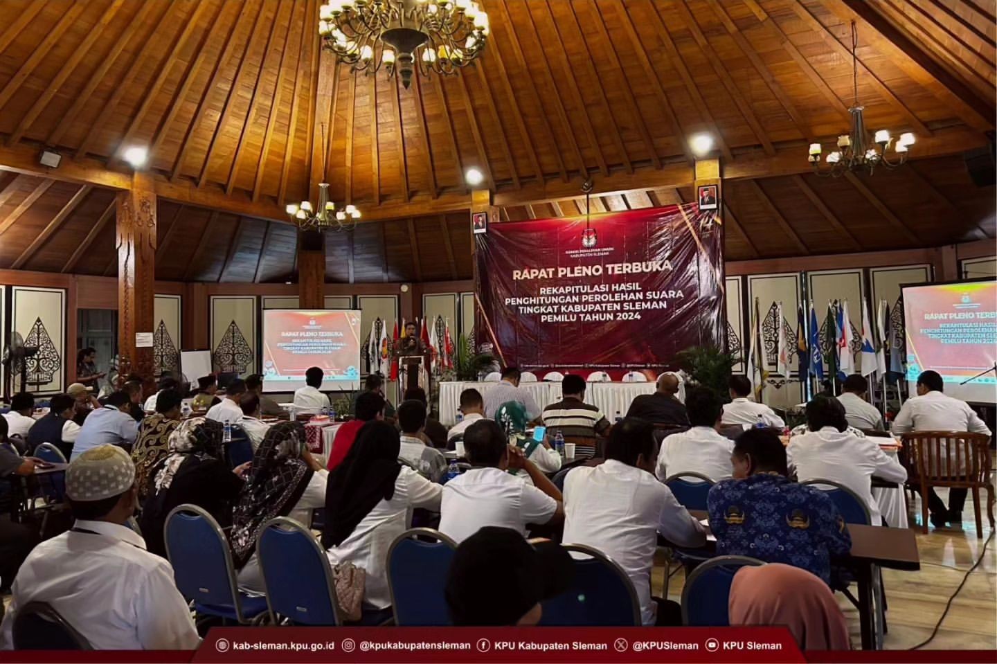Sleman (28/02) - KPU Kabupaten Sleman melaksanakan Rekapitulasi Hasil Penghitungan Perolehan Suara Tingkat Kabupaten pada tanggal 28 Februari - 1 Maret 2024 di Java Village Resort Pandowoharjo, Sleman.
