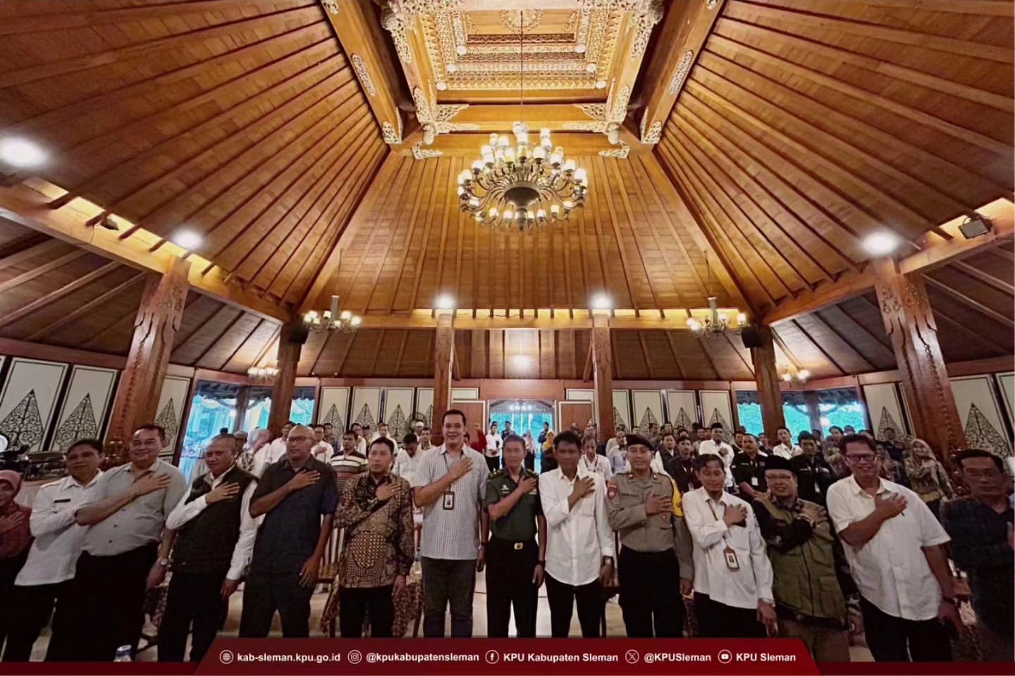 Sambutan juga diberikan oleh Ketua KPU DIY dan Pj. Sekretaris Daerah (Sekda) Pemkab Sleman. Ketua KPU DIY, Ahmad Sidqi menyampaikan untuk semua pihak tetap dapat melanjutkan kerja sama, sinergitas, dan gotong royong untuk mensukseskan tahapan sampai tuntas.
