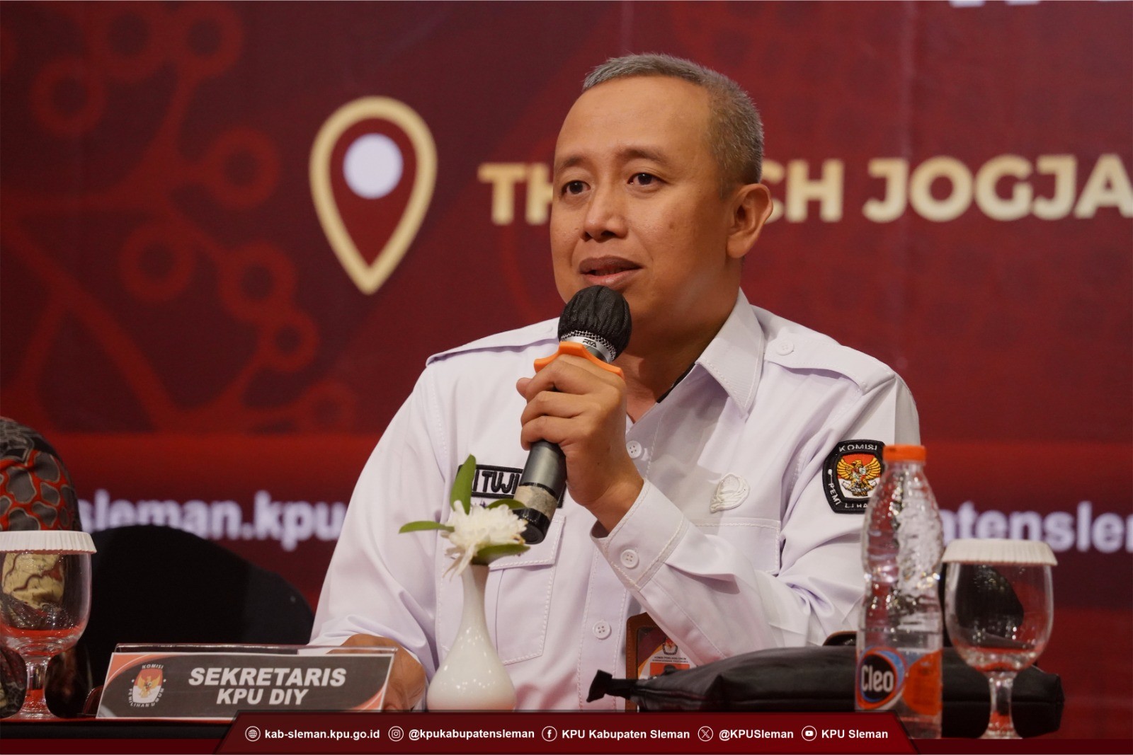 Selanjutnya, materi kedua yakni terkait Dukungan Pemerintah Kabupaten Sleman dalam Penyelenggaraan Pilkada Tahun 2024. Materi tersebut disampaikan oleh Uun Mardiyanto dari Bagian Pemerintahan Sekretariat Daerah Kabupaten Sleman.