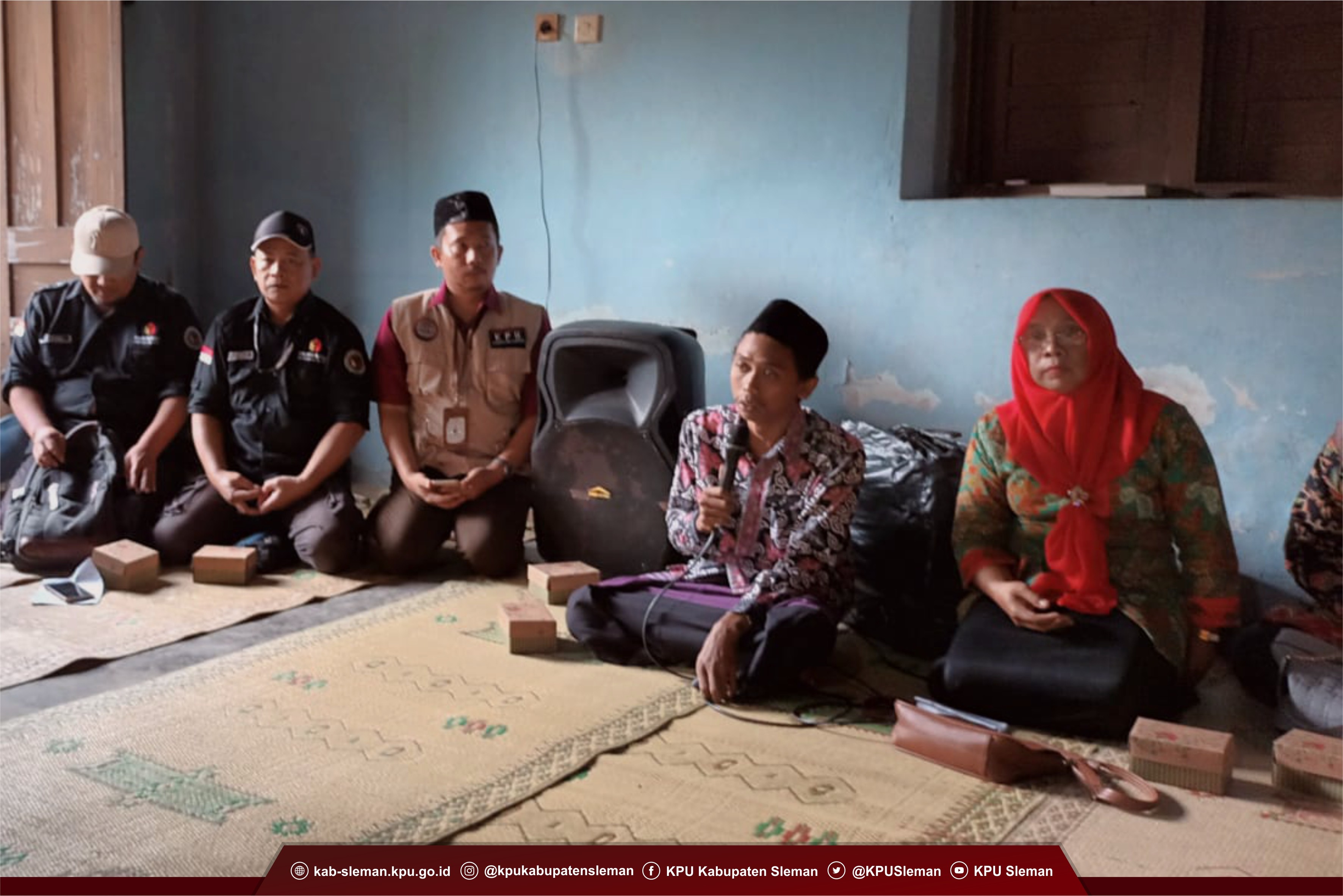 Sleman (31/05) - Aswino Wardhana selaku Ketua Divisi Sosialisasi Pendidikan Pemilih, Partisipasi Masyarakat, dan Sumber Daya Manusia KPU Kabupaten Sleman memberikan sosialisasi terkait Pemilihan Umum 2024 beserta Pendidikan Pemilih yang dilaksanakan bersama perwakilan PPK Kapanewon Sleman, Panitia Pengawas Pemilu (Panwaslu) Kapanewon Sleman, dan PPS Kalurahan Caturharjo pada Minggu (28/05) di kediaman Ihsan Heriyanto selaku Dukuh di Padukuhan Kendangan. Kegiatan sosialisasi ini dihadiri oleh ibu-ibu yang tergabung dalam Pembinaan Kesejahteraan Keluarga (PKK).