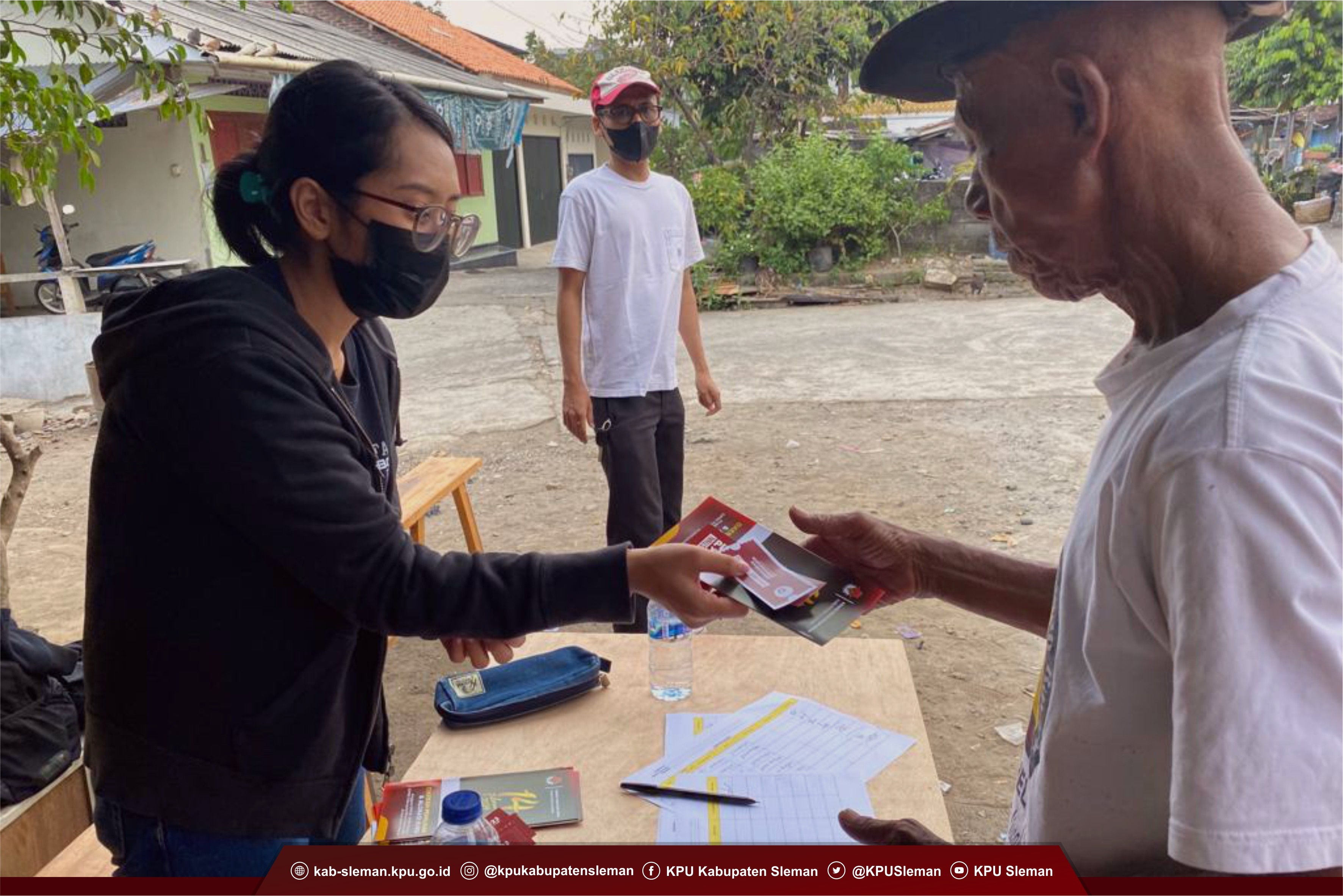 dok. foto petugas memberikan flyer dan leaflet pemungutan suara