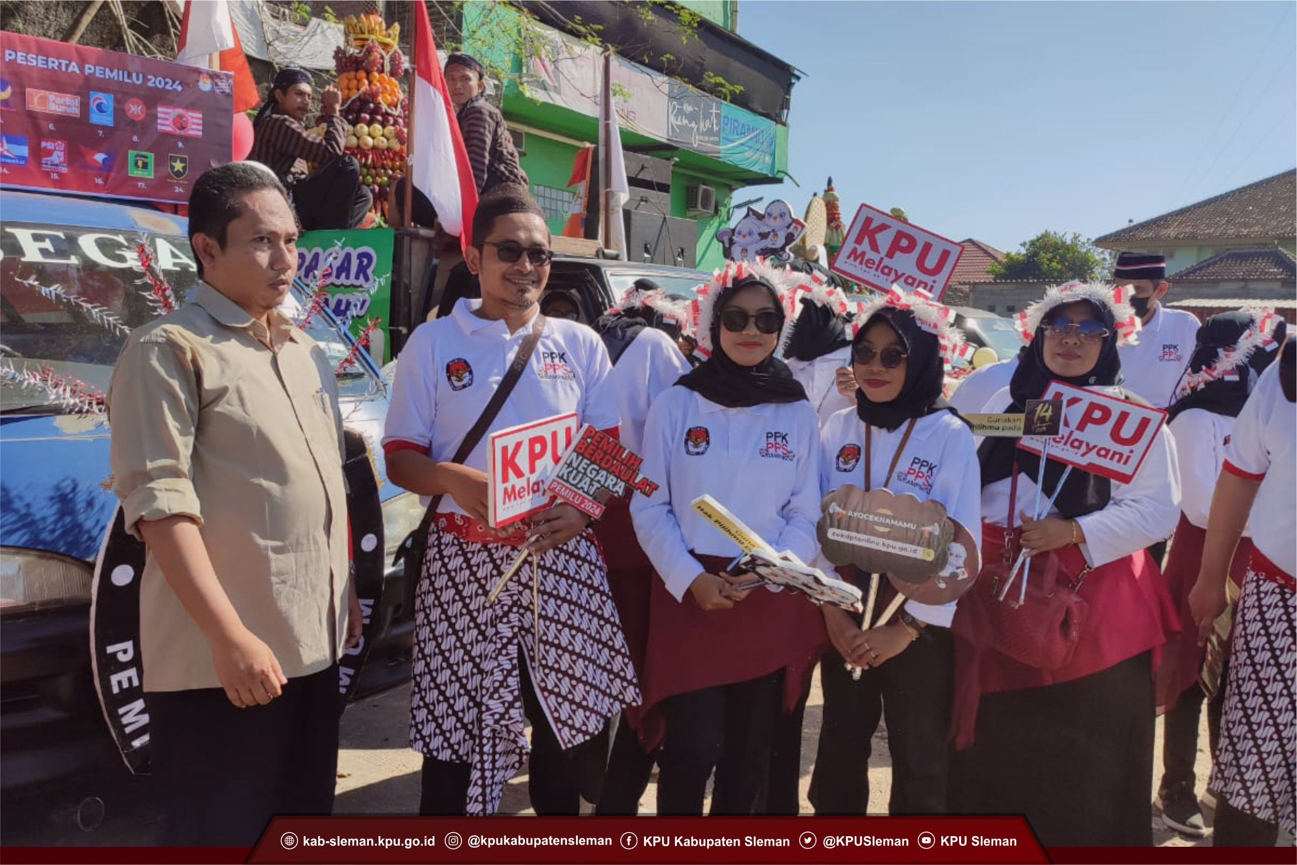 Ketua Divisi Sosialisasi, Pendidikan Pemilih, Parmas dan SDM serta PPK dan PPS se Kapanewon Gamping mengikuti kirab dengan berjalan mengelilingi Kalurahan Ambarketawang dengan membagikan leaflet, stiker dan flyer yang berisi tanggal pemungutan suara dan tahapan Pemilu 2024. Diiringi dengan diperdengarkannya jingle Pemilu 2024, masyarakat antusias mengikuti kegiatan tersebut, terbukti dengan animo masyarakat bertanya tentang tanggal pemungutan suara dan interaksi dengan maskot Pemilu 2024 Sura dan Sulu. (mbl)