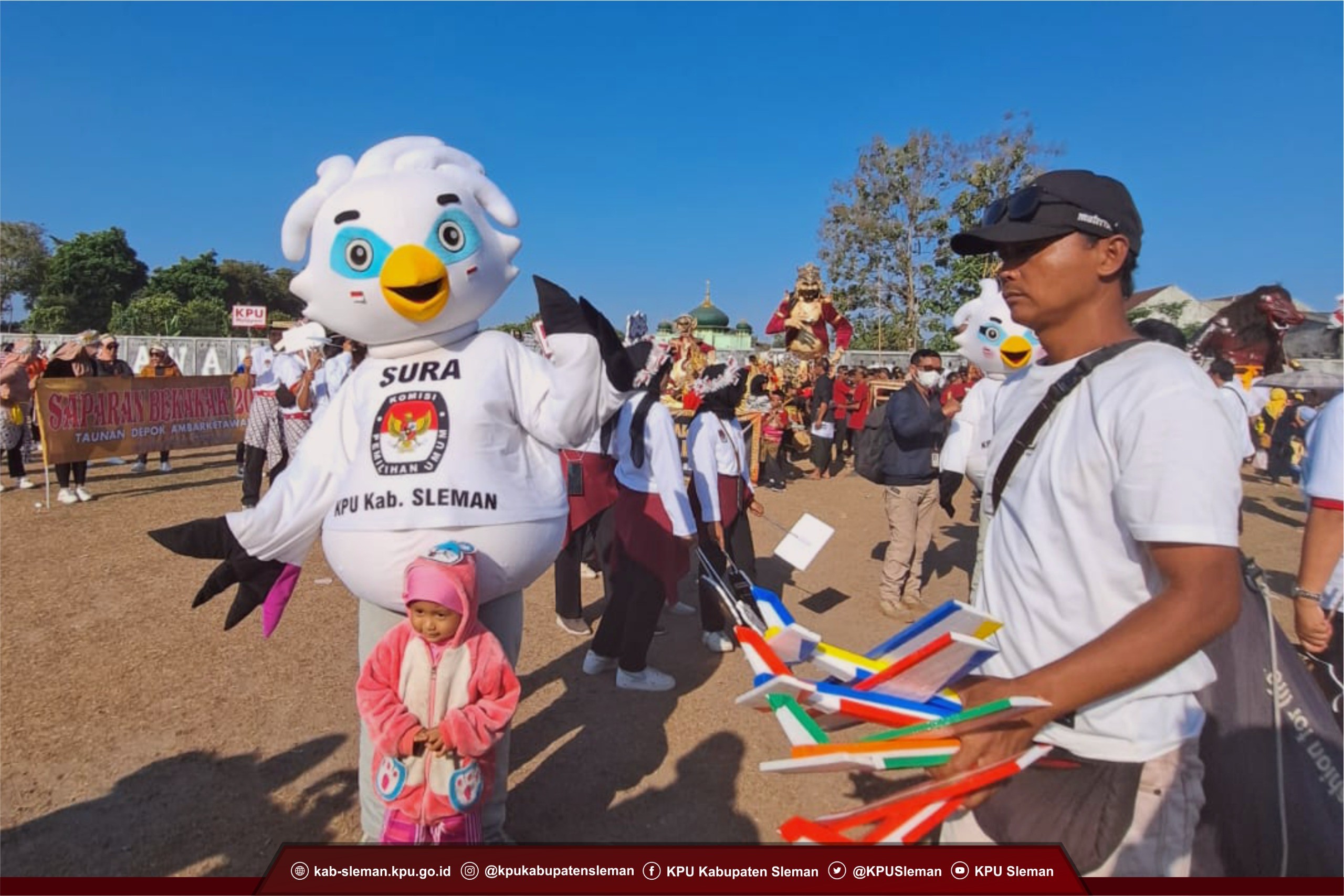 Sleman (07/09) – Jelang Pemilu 2024, sosialisasi tiada henti digaungkan KPU Kabupaten Sleman dalam berbagai kesempatan. Kesenian dan Budaya juga menjadi salah satu media untuk melakukan sosialisasi. Gelaran Kirab Saparan Bekakak 2023 yang diselenggarakan oleh Pemerintah Kalurahan Ambarketawang menjadi event yang efektif dalam melaksanakan Sosialisasi Pemilu 2024. Hal ini dikarenakan banyaknya pengunjung dari berbagai segmen pemilih. Gelaran yang rutin diadakan tahunan setiap tanggal 15 Bulan Safar dalam penanggalan Jawa ini menampilkan kreasi seni dan budaya masyarakat Kalurahan Ambarketawang.