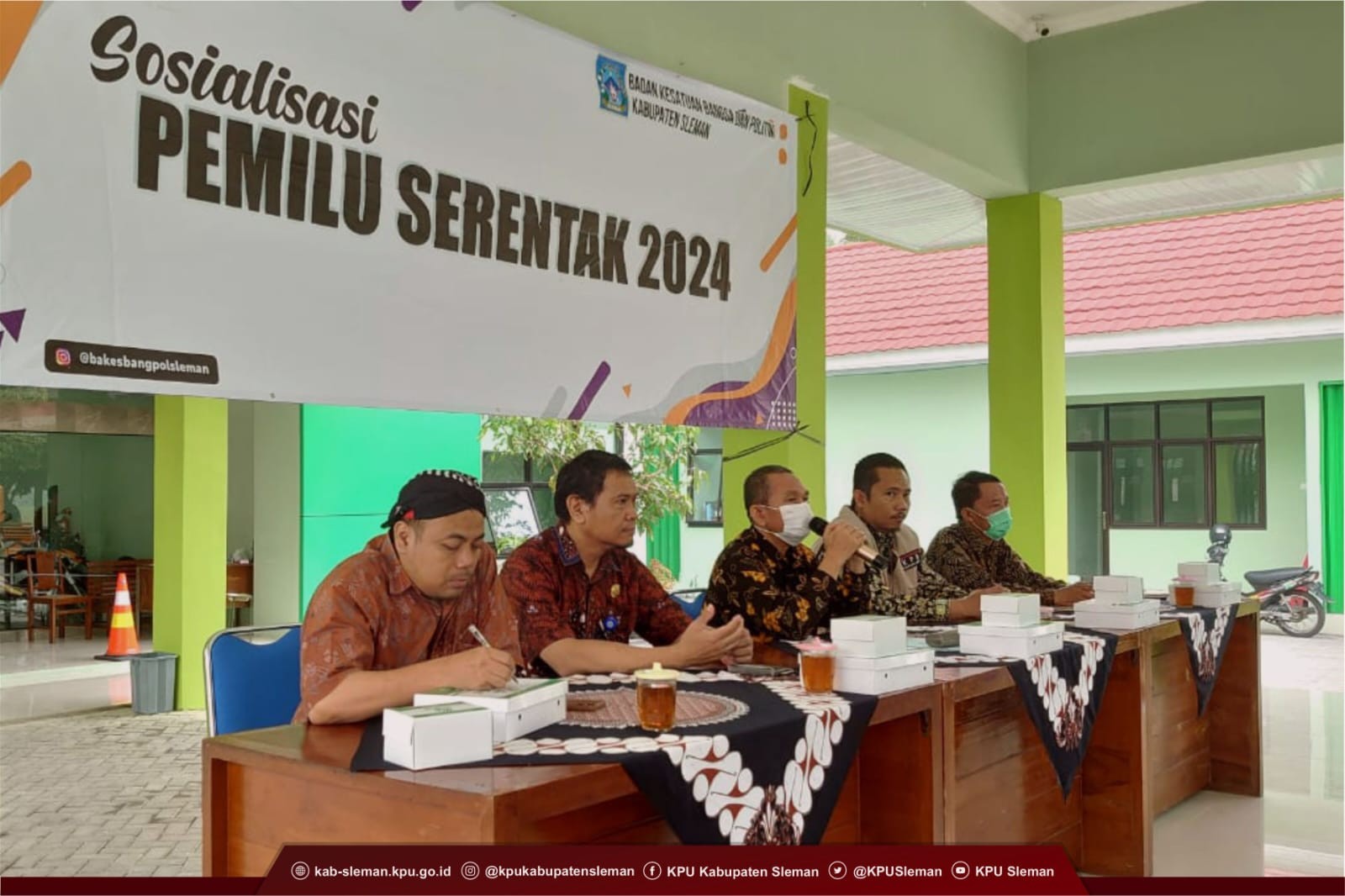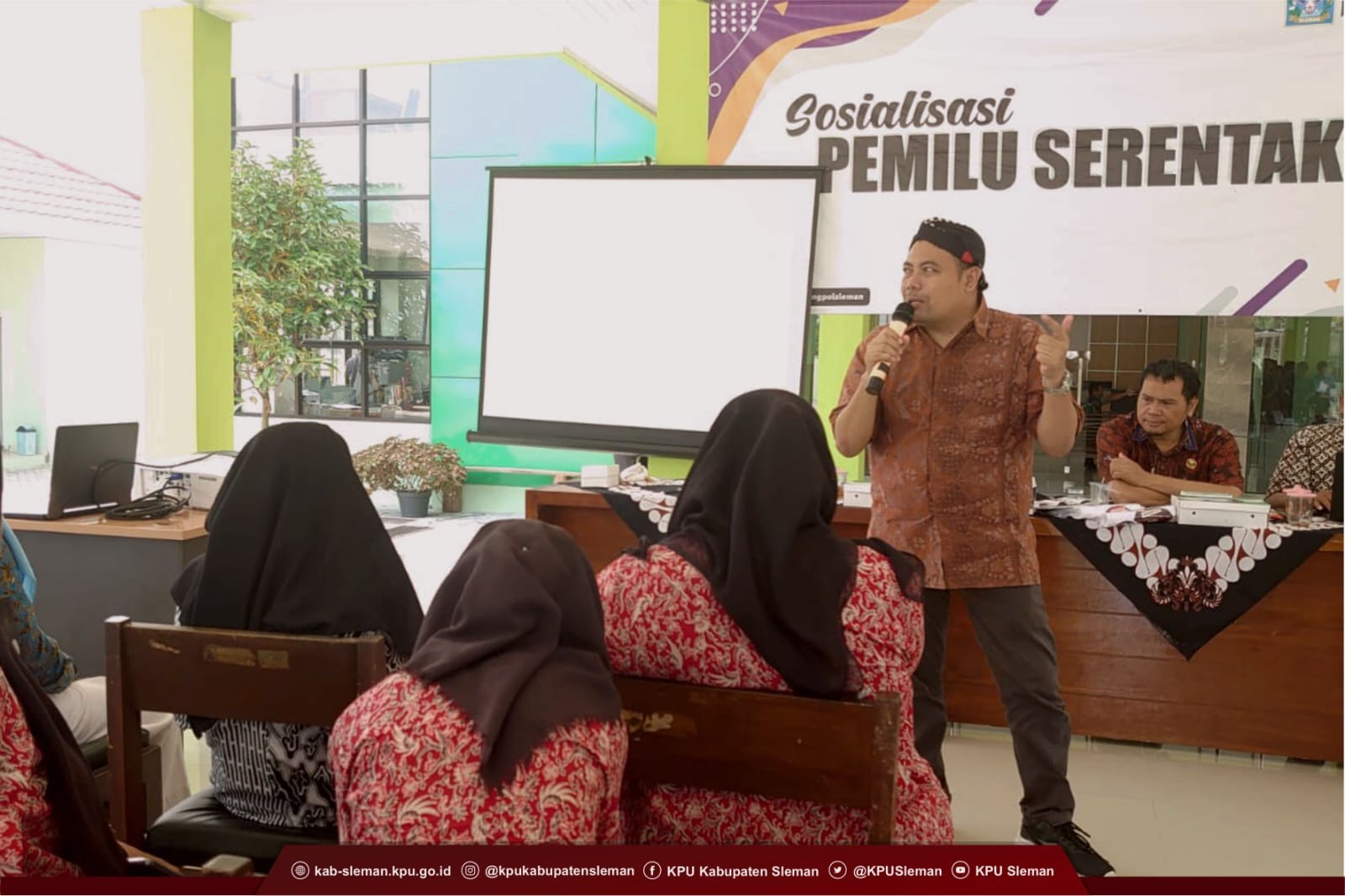 Sleman (19/03) - Ketua Divisi Sosialisasi, Pendidikan Pemilih, Partisipasi Masyarakat, dan SDM KPU Kabupaten Sleman, Aswino Wardhana hadir menjadi narasumber dalam Sosialisasi Pemilu Serentak 2024 yang diselenggarakan oleh Badan Kesatuan Bangsa dan Politik (Kesbangpol) Kabupaten Sleman pada Kamis (16/03). Dua narasumber yang turut hadir dalam sosialisasi tersebut Ketua Bawaslu Kabupaten Sleman, Abdul Karim Mustofa, dan akademisi Zen Risna.