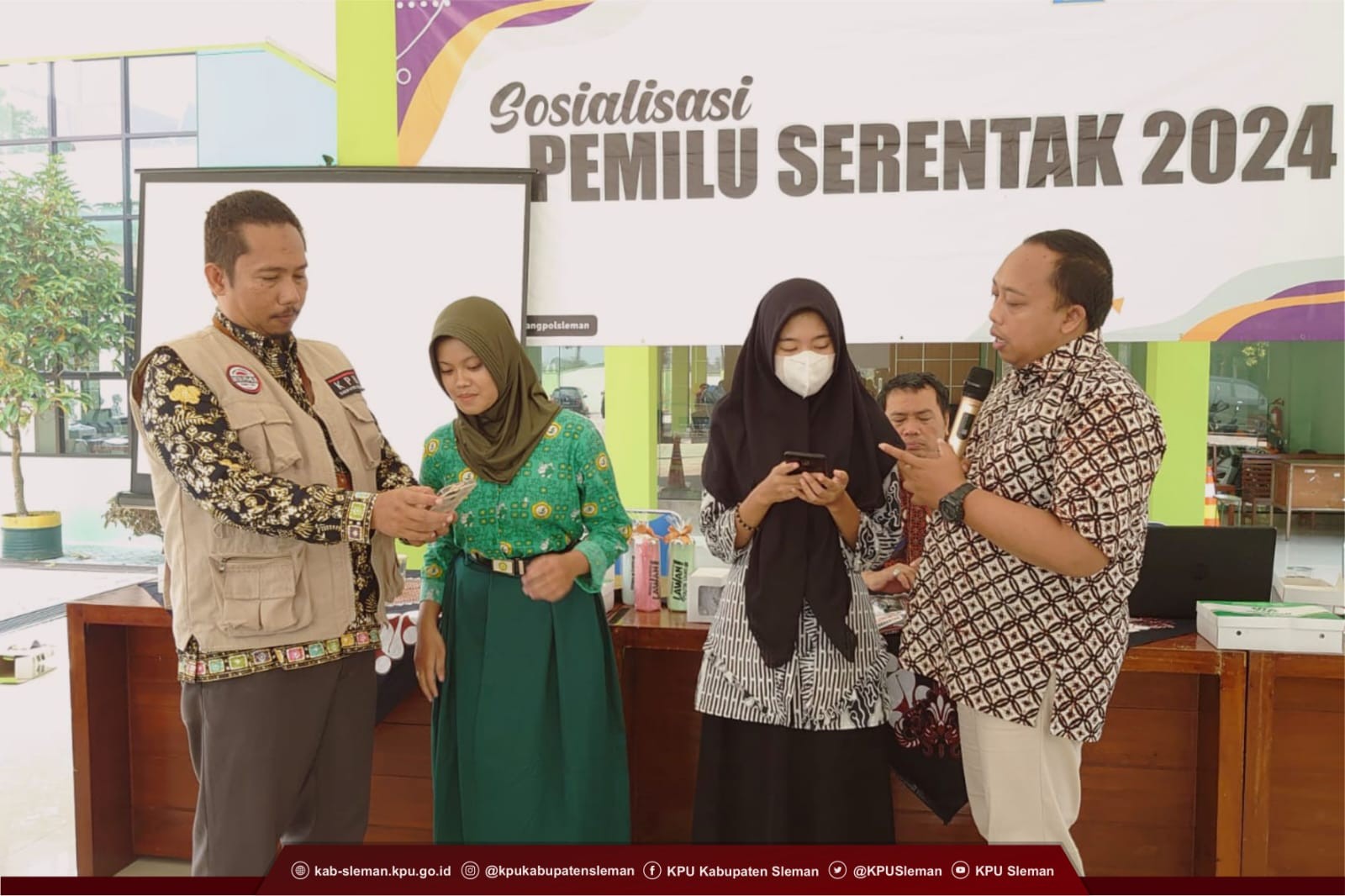 Di hadapan para peserta yang berasal dari siswa-siswi SMA/SMK Se-Moyudan, Aswino sebagai narasumber pertama menyampaikan bahwa pelaksanaan pemungutan suara dilaksanakan Rabu, 14 Februari 2024 dan syarat pemilih dimana salah satunya bagi siswa-siswi yang sudah berumur 17 tahun pada tanggal tersebut sudah mempunyai hak untuk menggunakan hak pilih. Dalam kesempatan tersebut juga dilakukan simulasi pengecekan data pemilih pada laman cekdptonline.kpu.go.id. Bagi yang belum terdaftar dan belum dicoklit, maka dapat melaporkan ke PPS/PPK setempat atau langsung ke KPU Kabupaten Sleman.