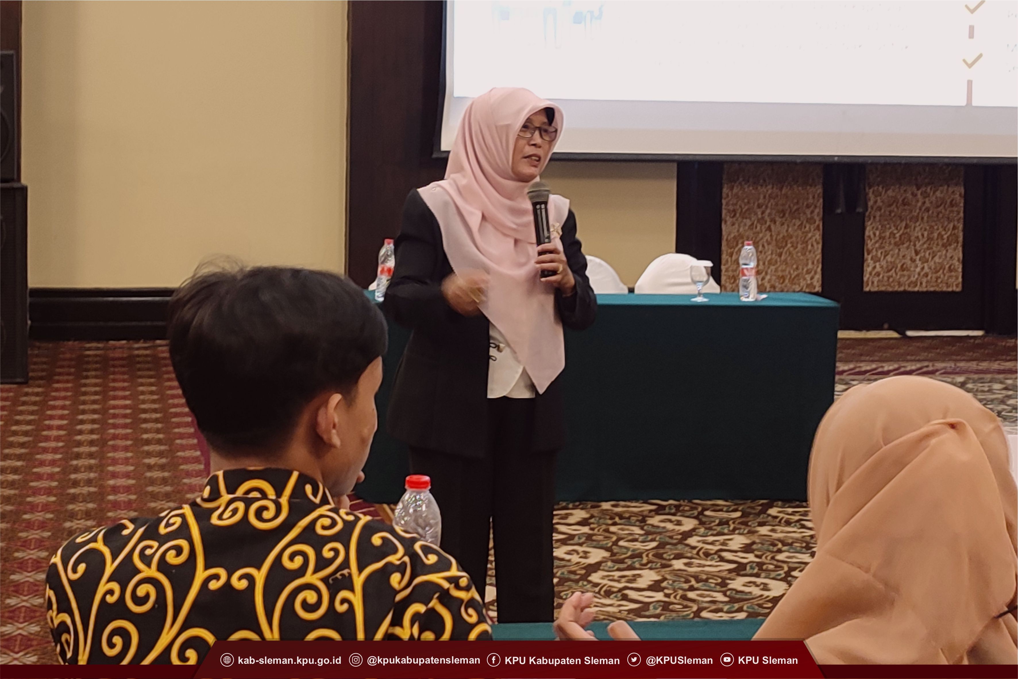 Pemateri terakhir, Indah Sri Wulandari menitikberatkan pada hubngan kerja dan peningkatan kapasitas penyelenggara pemilu. Menurutnya peran PPS sangat penting sebagai ujung tombak pelaksanaan pemilu. PPS diharapkan dapat bersinergi dengan pamong/sekretariat PPS dari pihak terkait.