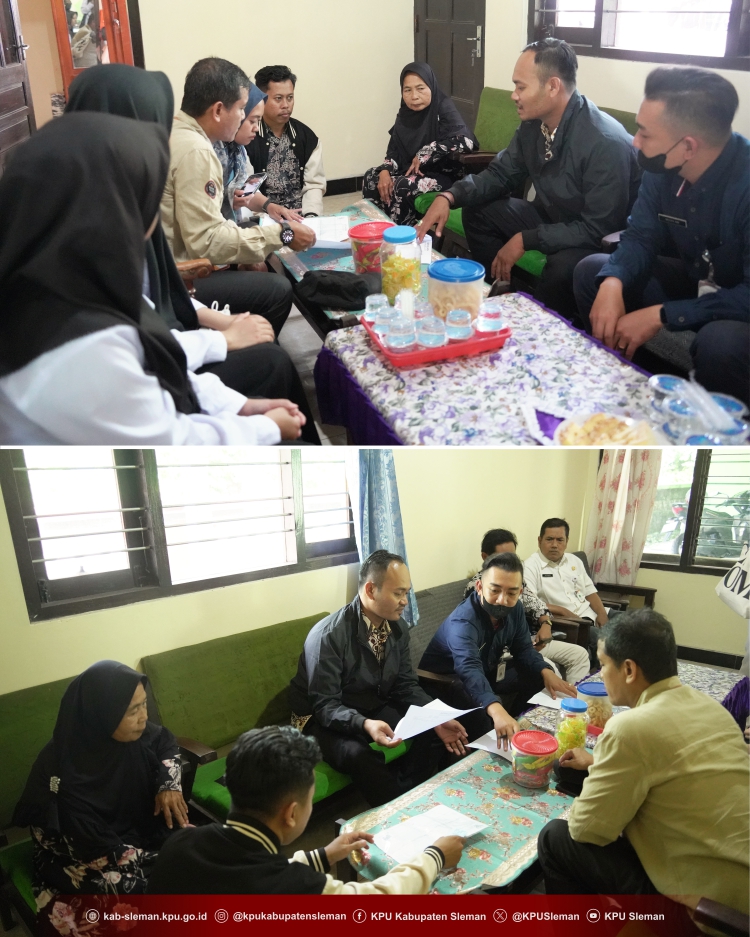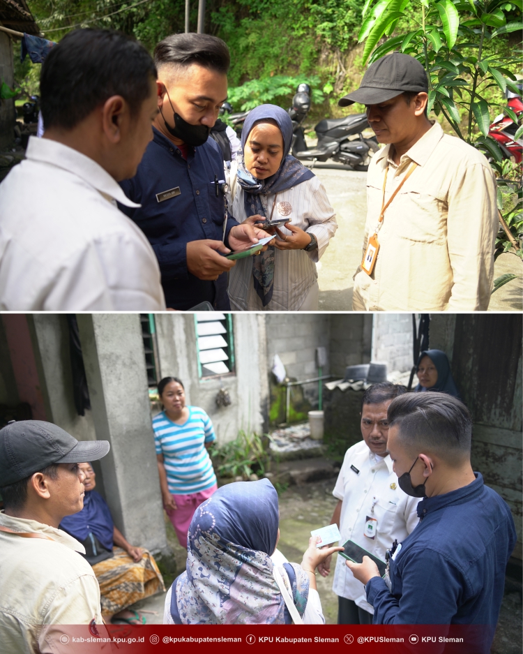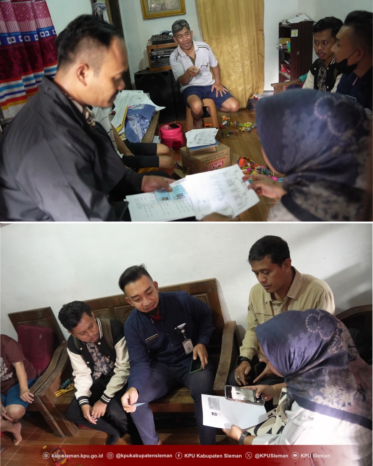 Ketua Divisi Perencanaan Data dan Informasi KPU Kabupaten Sleman, Arif Setiawan bersama Ketua Divisi Hukum dan Pengawasan KPU Kabupaten Sleman, Sura’ie dan didampingi Sekretariat melakukan coklit terhadap masyarakat dengan data kependudukan dan data pemilih dari KPU Kabupaten Sleman yang kemudian dicek secara langsung kebenarannya.
