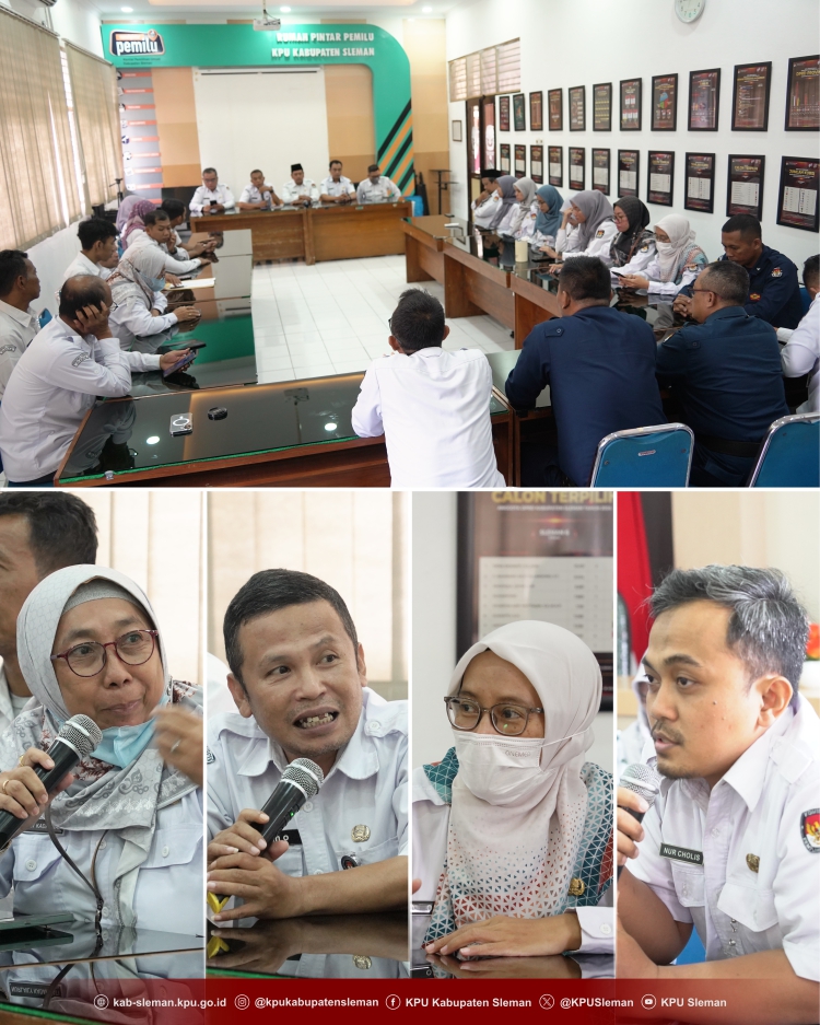 Sleman – KPU Kabupaten Sleman melaksanakan Rapat Penguatan Integritas Kelembagaan dan SDM Sekretariat KPU Kabupaten Sleman pada Senin (30/06) yang bertempat di Ruang Rapat KPU Kabupaten Sleman. Kegiatan tersebut dihadiri oleh seluruh SDM Sekretariat KPU Kabupaten Sleman.