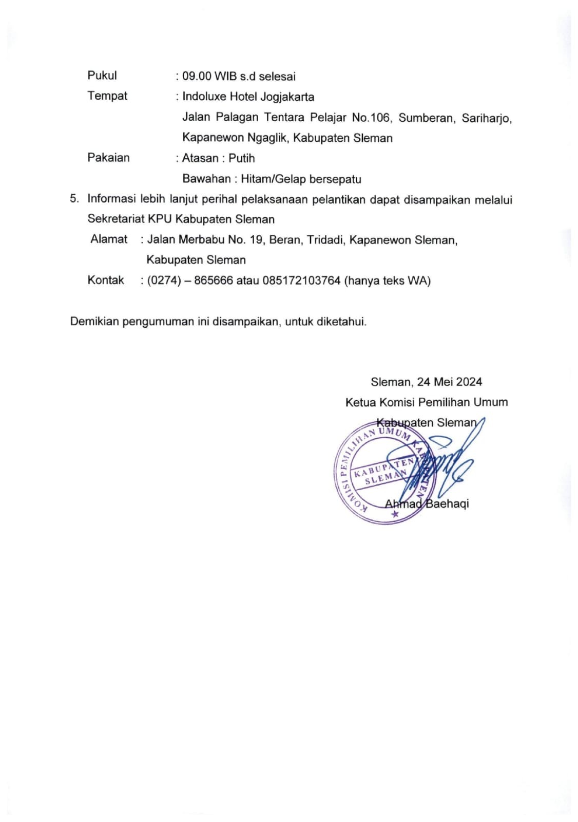 Pengumuman KPU Kabupaten Sleman tentang Penetapan Hasil Seleksi Calon Anggota Panitia Pemungutan Suara Terpilih untuk Pilbup Sleman Tahun 2024