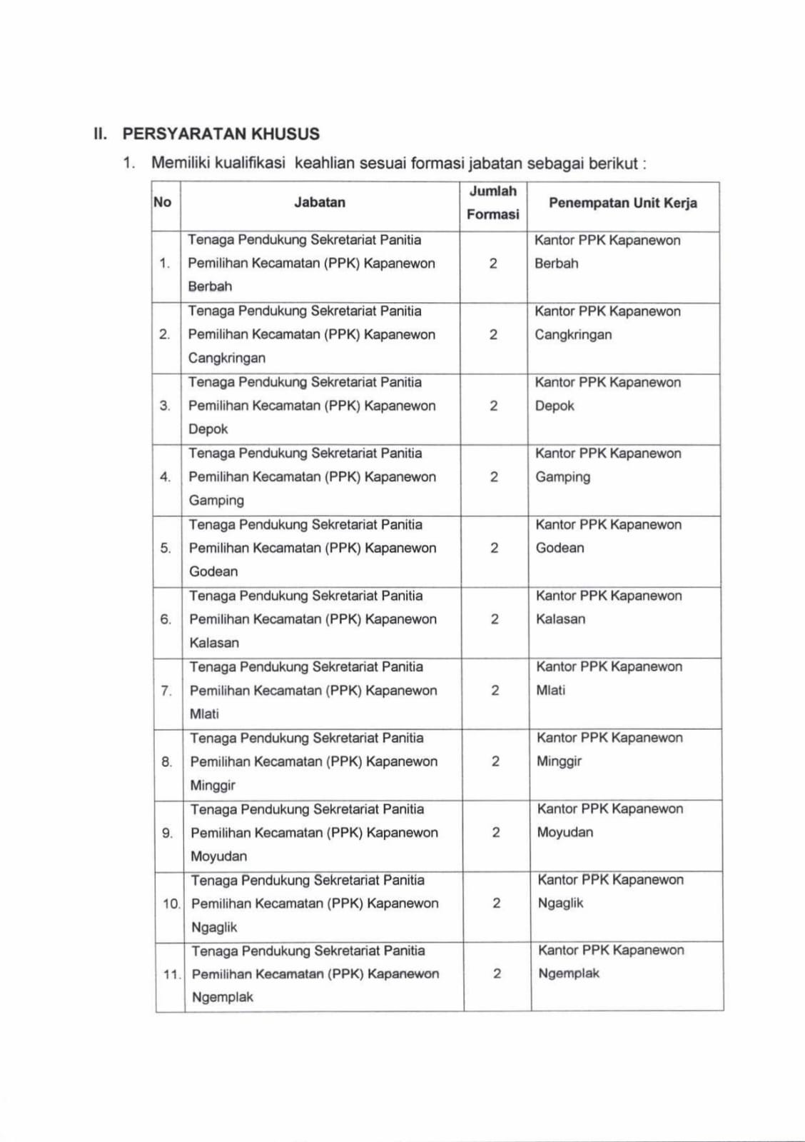 Pengumuman Sekretariat KPU Kabupaten Sleman tentang Lowongan Pendaftaran Tenaga Pendukung Sekretariat PPK pada Sekretariat KPU Kabupaten Sleman dalam Pemilu 2024