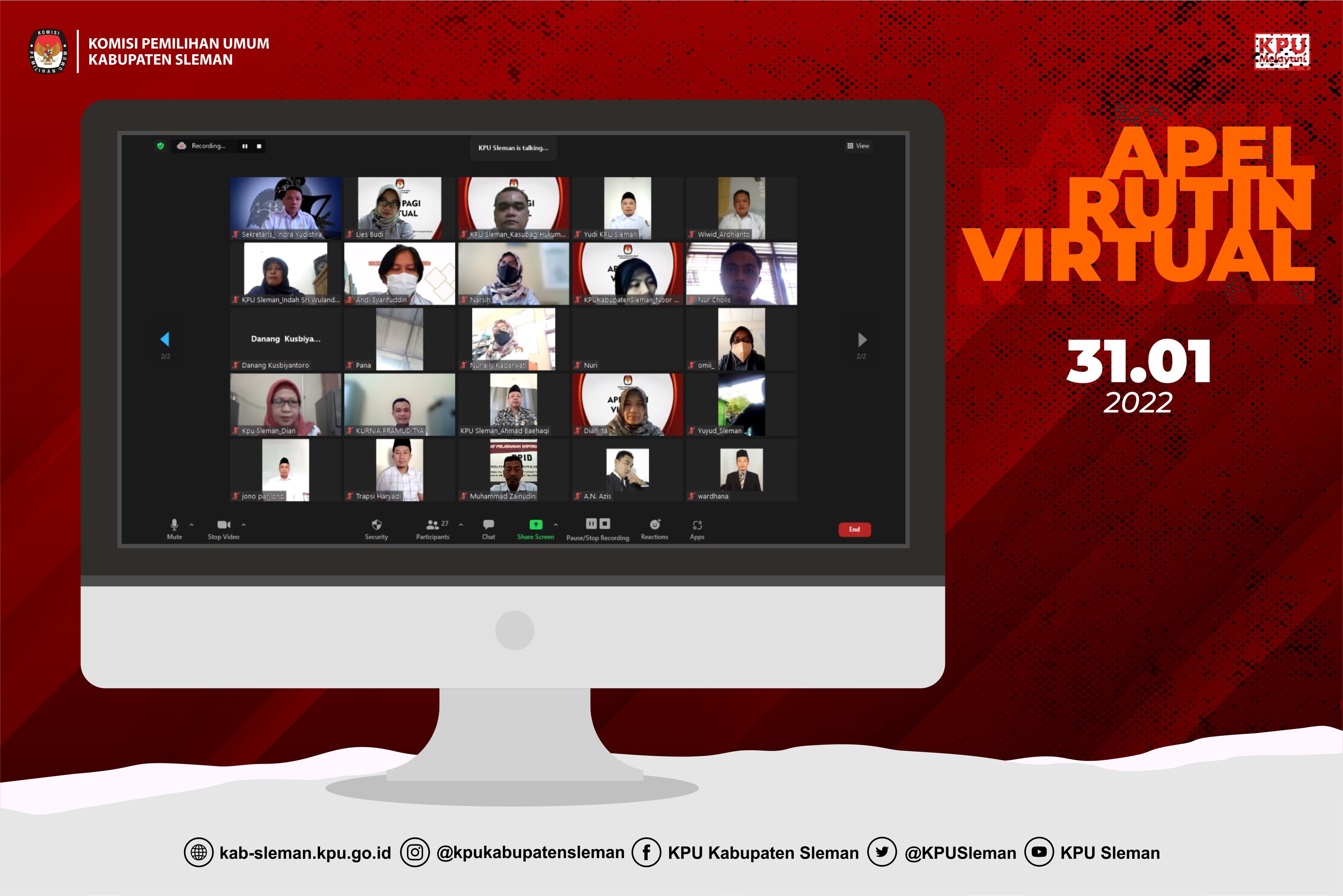 Sleman (31/01) – Pada penghujung Bulan Januari, KPU Kabupaten Sleman kembali melaksanakan apel pagi pada Senin 31 Januari 2022. Selama empat puluh lima menit apel dilaksanakan secara daring melalui Zoom Cloud Meeting.
