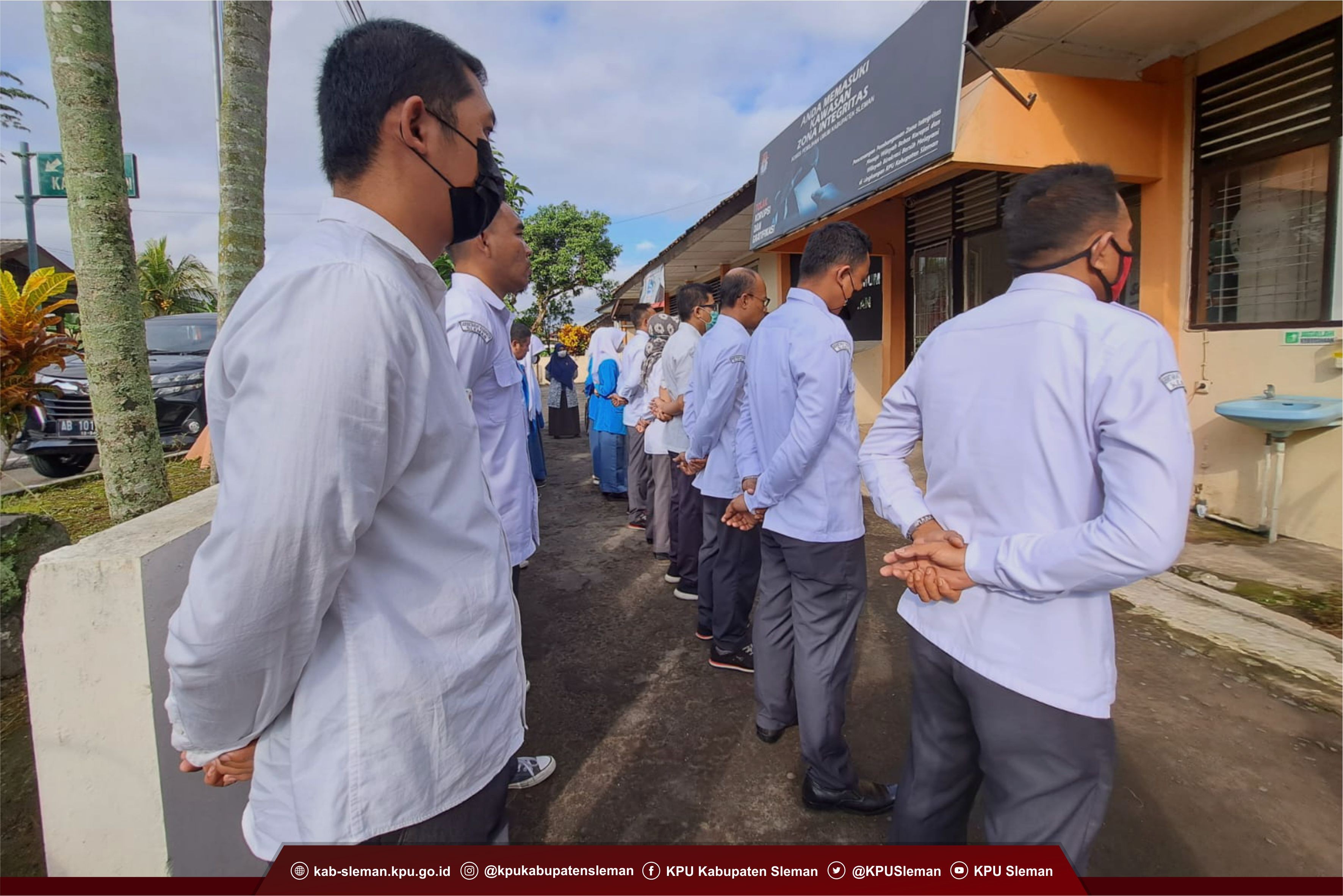 Hadir sebagai pembina apel Ketua Divisi Hukum dan Pengawasan KPU Kabupaten Sleman, Ahmad Baehaqi. Dalam membuka arahannya, Baehaqi menyampaikan bahwa dalam masa tahapan, ikhtiar untuk selalu meningkatkan kesehatan baik fisik maupun mental wajib dilakukan agar dalam melaksanakan rangkaian tahapan ke depan dapat berjalan dengan baik dan juga berjalan dengan lancar. Adapun jika dalam berikhtiar ternyata masih jatuh sakit, hal itu merupakan takdir di luar jangkauan manusia. Sebagai manusia wajib berikhtiar menjaga kesehatan dengan berbagai petunjuk dan ilmu pengetahuan yang telah diketahui bersama.