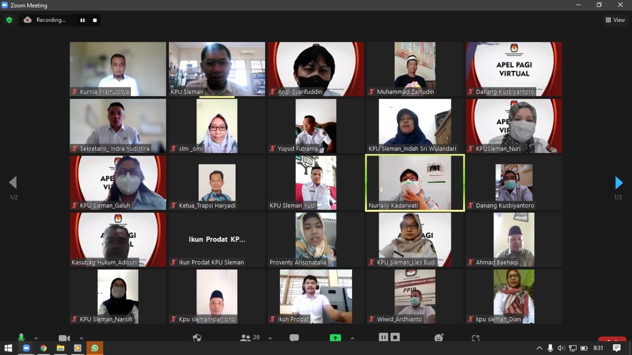 Apel Rutin KPU Kabupaten Sleman pada Senin (01/11) digelar secara virtual. Seluruh SDM KPU Kabupaten Sleman mengikuti kegiatan apel pagi melalui pranala Zoom Cloud Meeting.