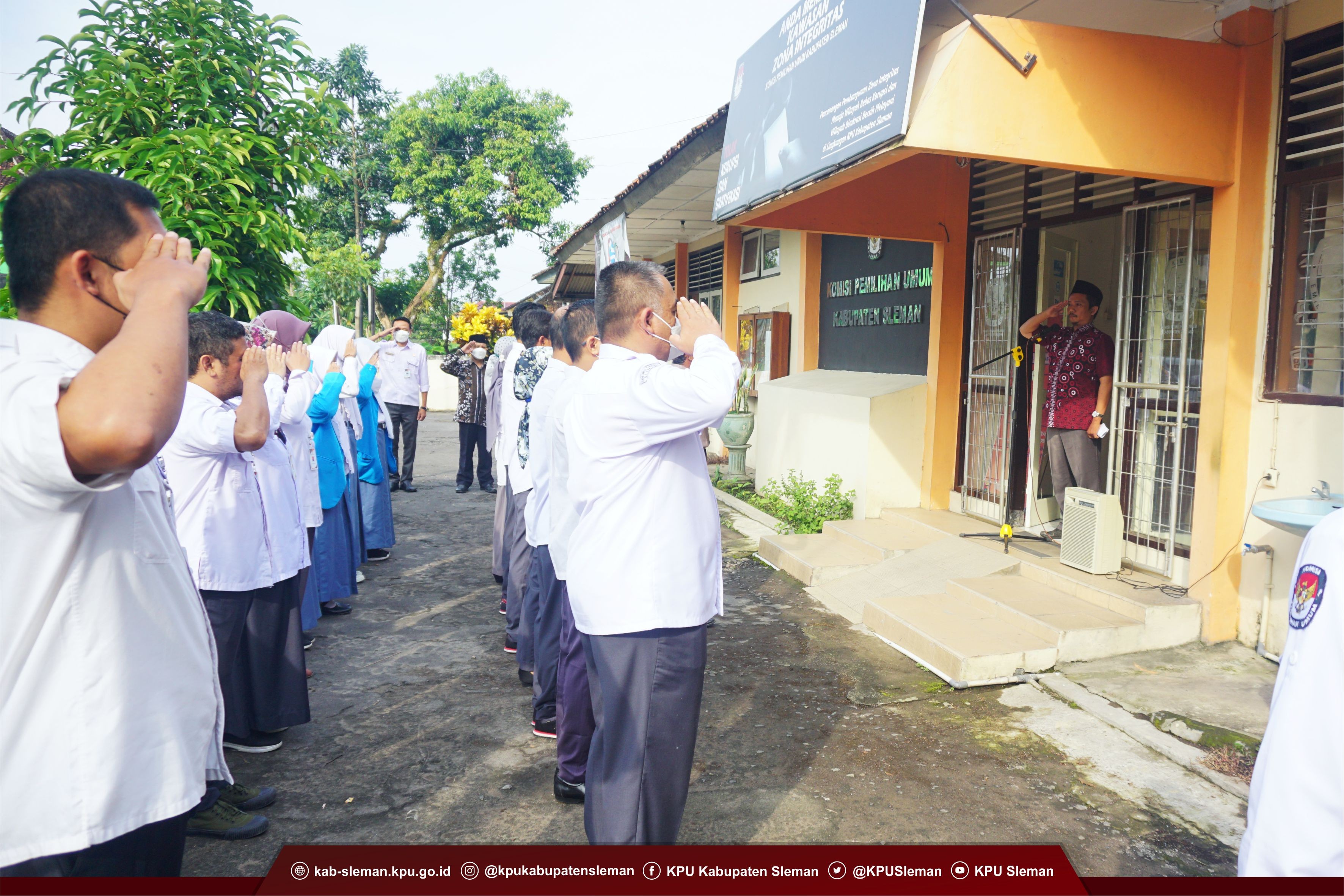 Sleman (13/06) – Untuk pertama kalinya semenjak merebak pandemi Covid-19 di Bulan Maret Tahun 2020, apel rutin mingguan kembali digelar KPU Kabupaten Sleman secara luring pada Senin, 13 Juni 2022. Kegiatan ini dilaksanakan di halaman Kantor KPU Kabupaten Sleman pada pukul 08.00 WIB dengan tema menjaga kesehatan dan ritme kerja kondusif jelang dimulainya Tahapan Pemilu 2024.