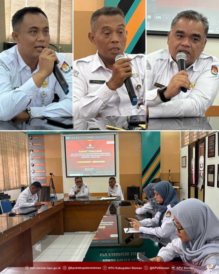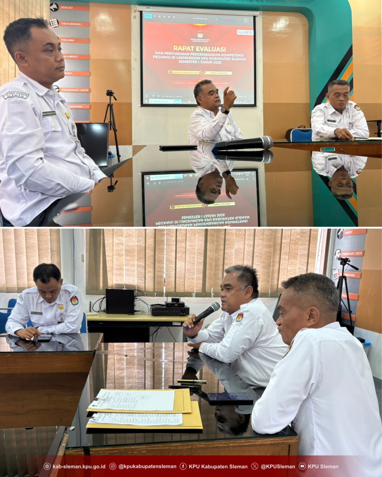 Sleman – Sebagai bentuk komitmen KPU Kabupaten Sleman dalam meningkatkan keahlian pegawai di lingkungan KPU Kabupaten Sleman, dilaksanakanlah Rapat Evaluasi dan Penyusunan Pengembangan Kompetensi Pegawai di lingkungan KPU Kabupaten Sleman Semester I Tahun 2025 pada hari Senin (7/7) yang diikuti pejabat struktural dan staf sub bagian SDM KPU Kabupaten Sleman.