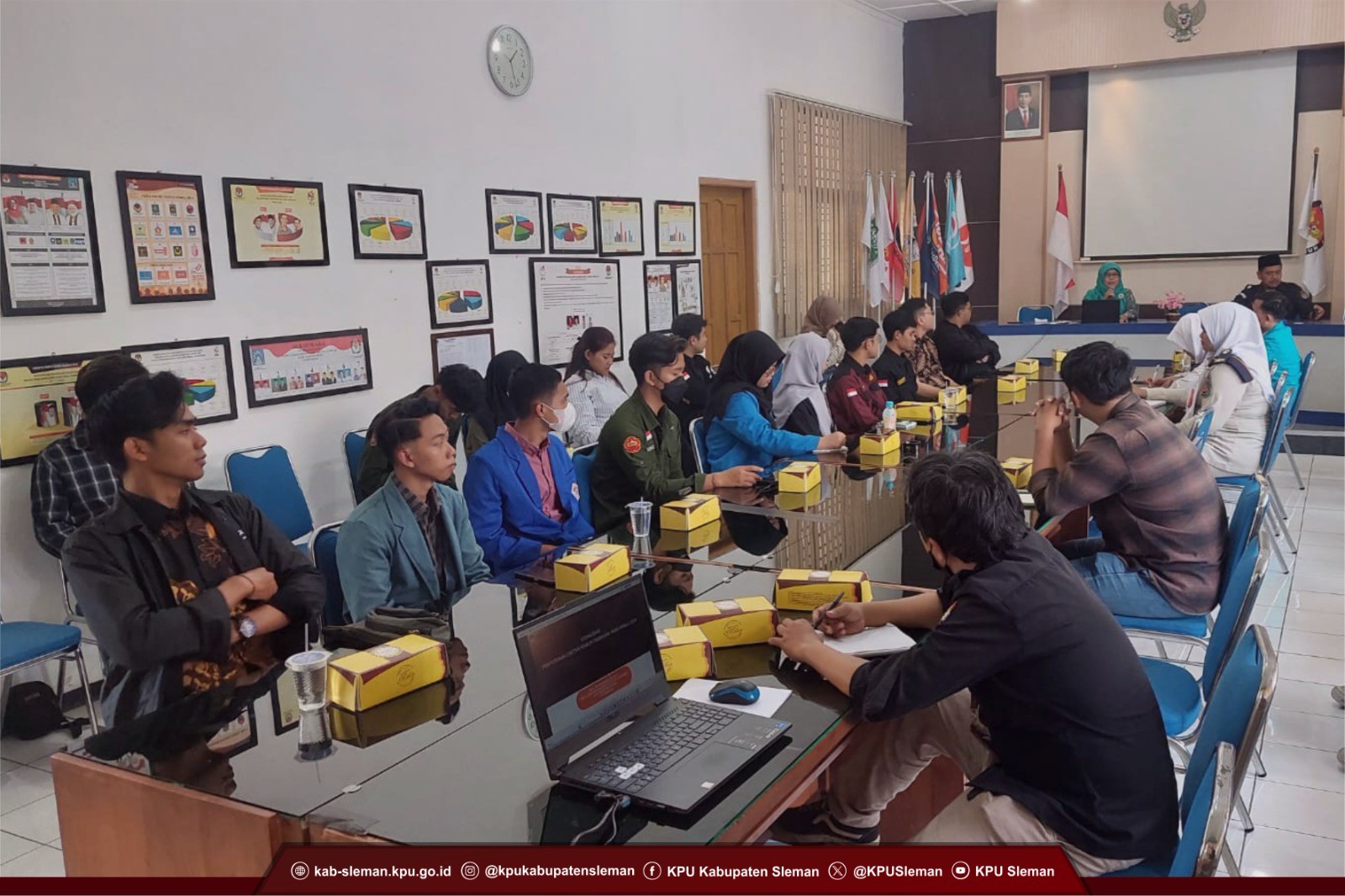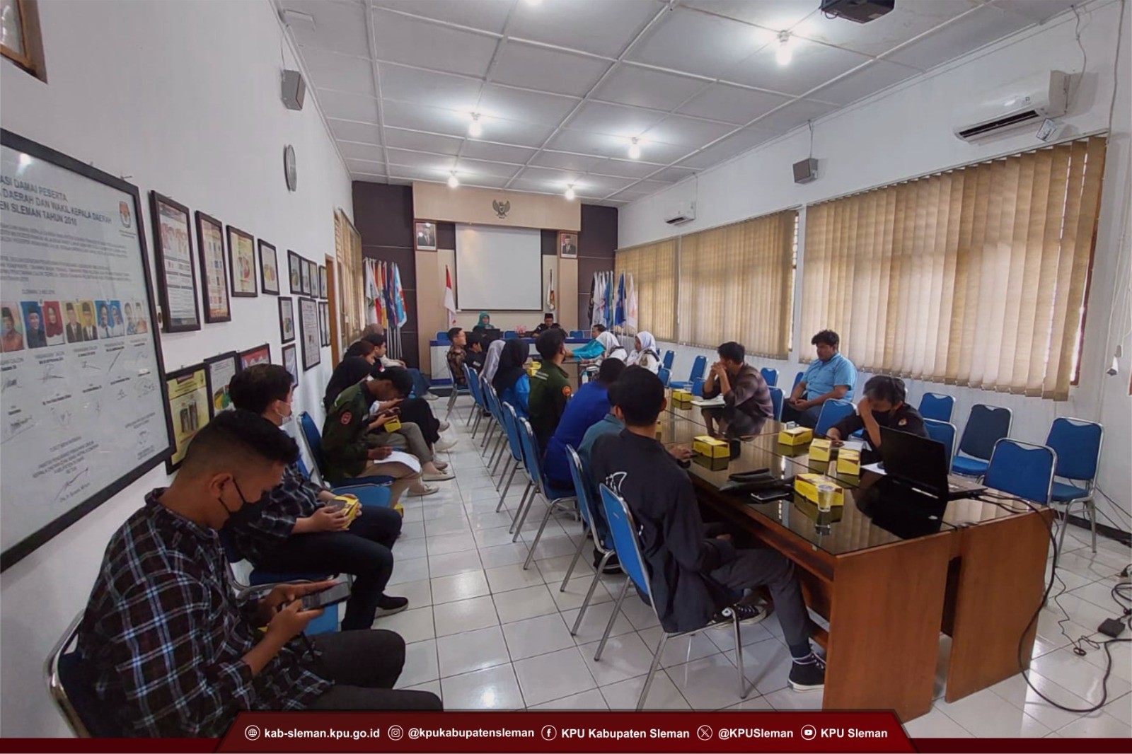 Sleman (06/10) - KPU Kabupaten Sleman menghimpun Ketua atau perwakilan Badan Eksekutif Mahasiswa (BEM) tiap perguruan tinggi se-Kabupaten Sleman pada Rapat Koordinasi Pindah Memilih yang diselenggarakan pada Rabu (04/10) di Ruang Rapat Kantor KPU Kabupaten Sleman. Kegiatan tersebut dalam rangka mempersiapkan Daftar Pemilih Tambahan (DPTb) untuk Pemilu 2024 mendatang. Bertindak sebagai pemateri dalam koordinasi ini yaitu Indah Sri Wulandari selaku Ketua Divisi Perencanaan, Data, dan Informasi KPU Kabupaten Sleman yang dimoderatori oleh Sutarto selaku Kepala Sub Bagian Perencanaan, Data, dan Informasi KPU Kabupaten Sleman.