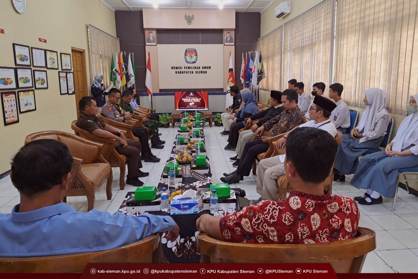 Hadir dalam acara tersebut yaitu Forkopimda, Badan Kesatuan Bangsa dan Politik Kabupaten Sleman, Bawaslu Kabupaten Sleman, dan Pemilih Pemula dari SMK Negeri 1 Tempel serta mengundang secara daring untuk menyaksikan melalui streaming kepada LO partai politik dan perwakilan penyelenggara Pemilu se-Kabupaten Sleman.