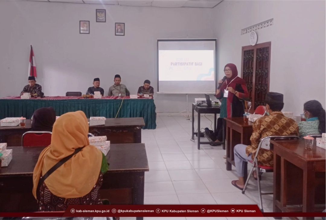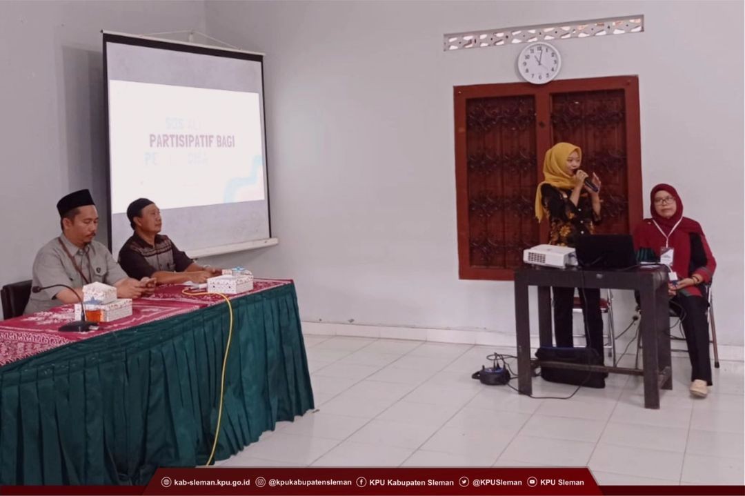 Turut menjadi pembicara yakni Ketua PPK Kapanewon Minggir yakni Novi Wulandari. Novi mengajak kepada peserta yang hadir dan dapat menggunakan gawai untuk membuka laman cekdptonline.kpu.go.id agar memastikan bahwa sudah terdaftar sebagai pemilih. Lebih lanjut, dipaparkan pula terkait tata cara pemilihan Pemilu 2024 mendatang, yakni dengan mencoblos kertas surat suara berjumlah 5 (lima), yakni untuk Presiden, Wakil Presiden, DPR RI, DPRD Provinsi, dan DPRD Kabupaten.