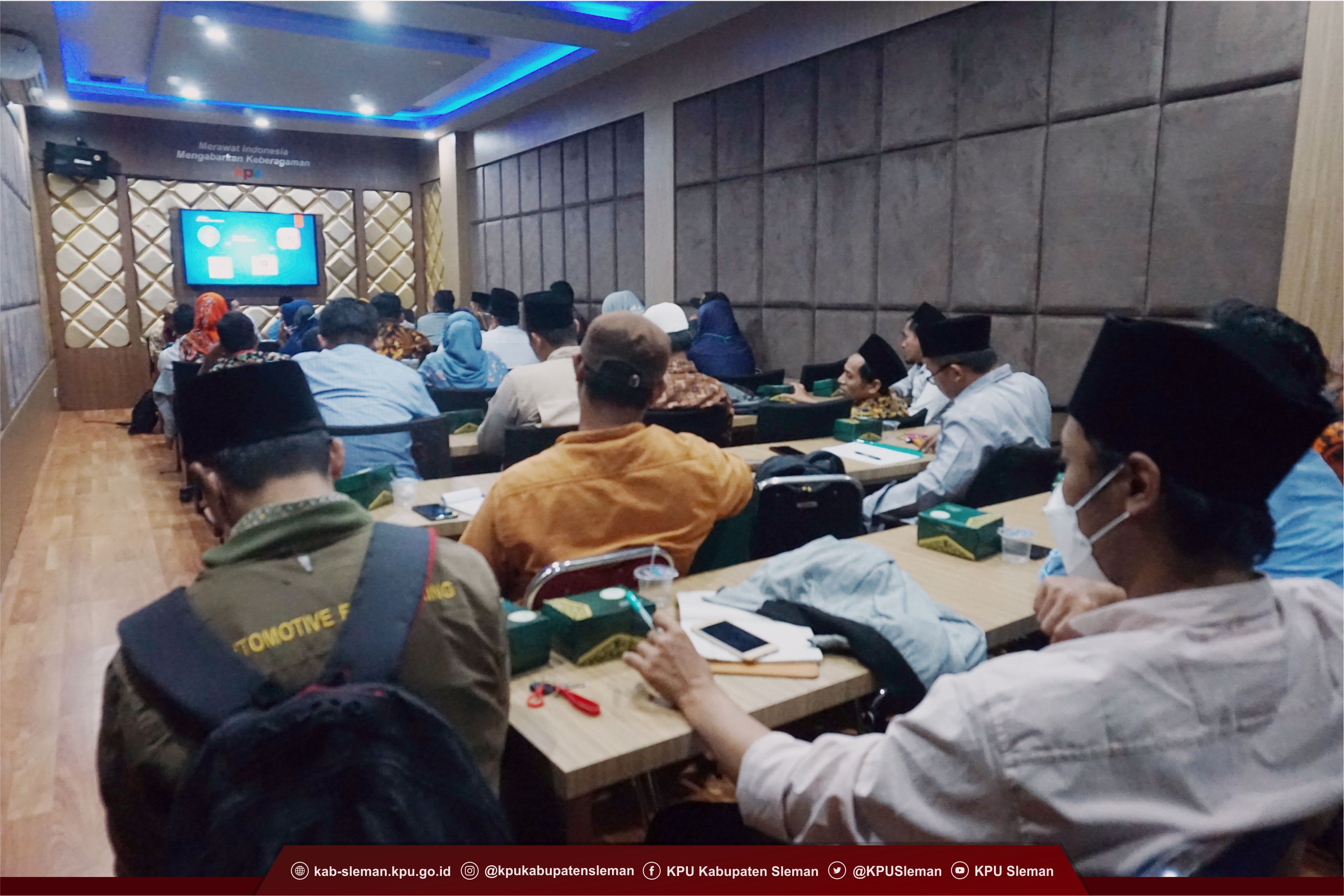 Sleman (24/09) - Kelompok keagamaan merupakan salah satu segmen yang menjadi perhatian utama KPU Kabupaten Sleman dalam melaksanakan giat sosialisasi. Organisasi keagamaan merupakan elemen penting dalam masyarakat yang mempunyai peran besar sebagai penggerak sosialisasi pemilu dan pemilihan dalam komunitas masyarakat.